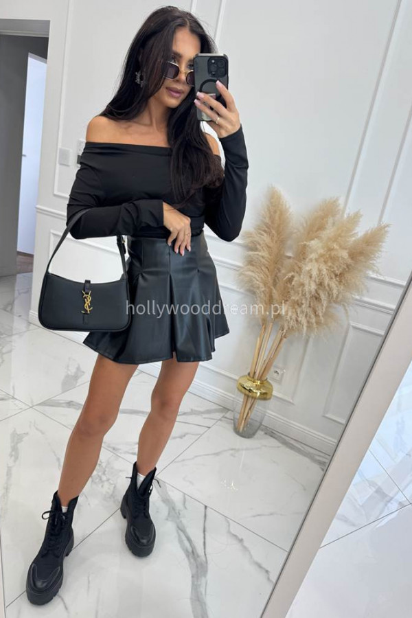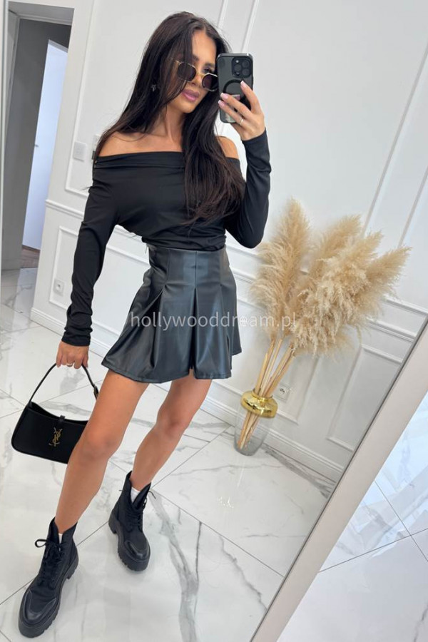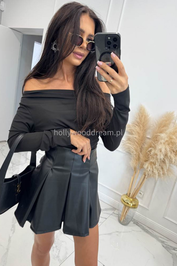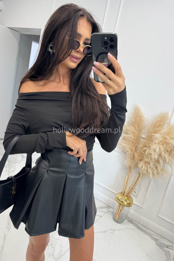 - Spódniczka krótka skórzana plisowana czarna MARIKA
