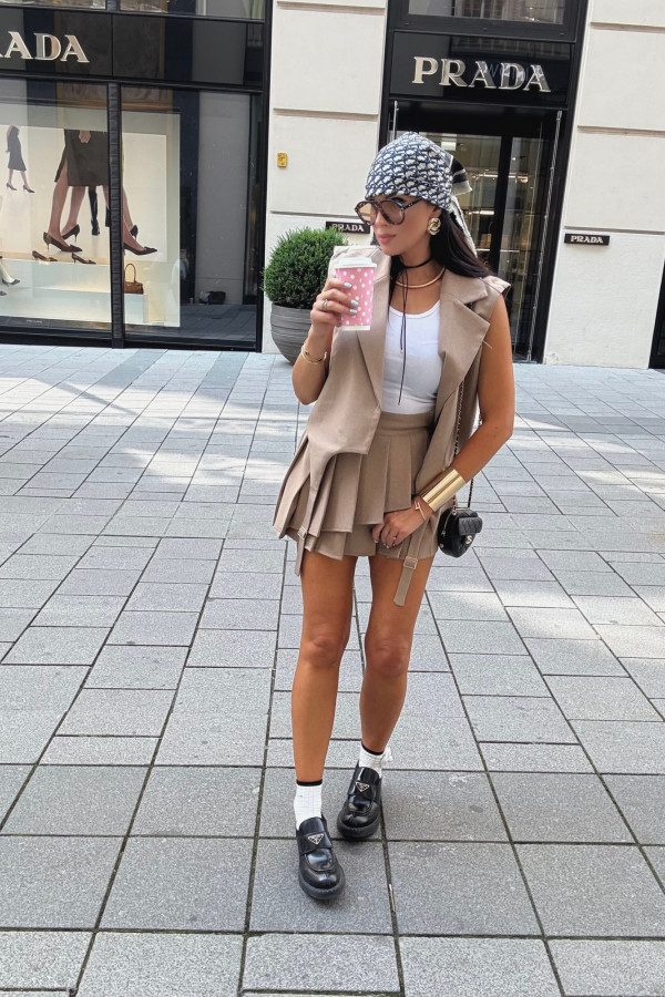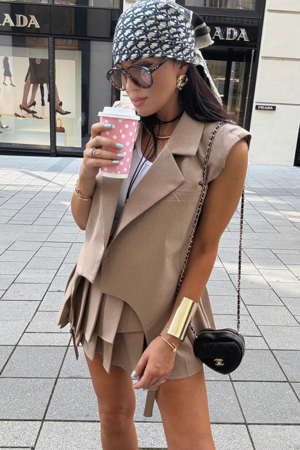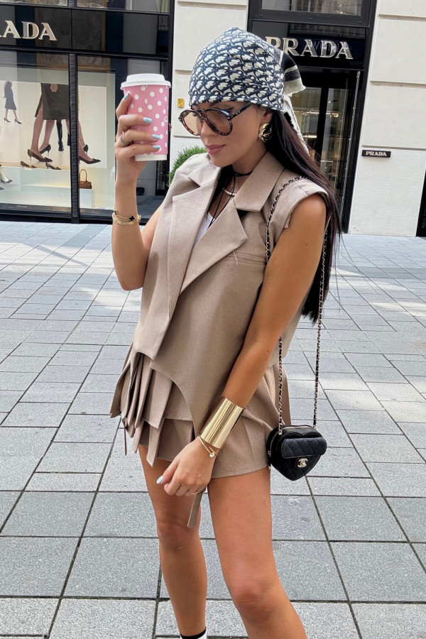 Kamizelka krótka przedłużona pasami na przodzie piaskowa LUSI to must-have dla kobiet lubiących urozmaicać swoje stylizacje. Wykonana z miękkiego, przyjemnego w dotyku materiału, idealnie dopasuje się do każdej stylizacji. Kamizelka w fasonie oversize idealnie będzie się prezentować w połączeniu z jeansami, a nawet z sukienką. LUSI posiada przedłużenia w postaci dwóch pasów na przodzie, dzięki którym wyróżnia się unikalnością. Możesz mieć pewność, że w naszej kamizelce LUSI gdziekolwiek będziesz, będziesz wyglądać zjawiskowo i unikatowo.