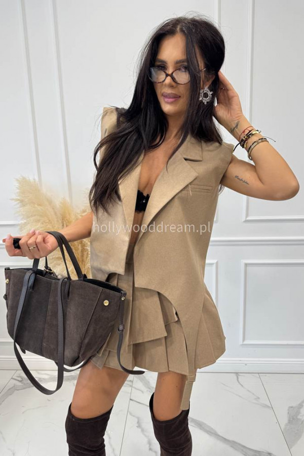 Kamizelka krótka przedłużona pasami na przodzie piaskowa LUSI 25