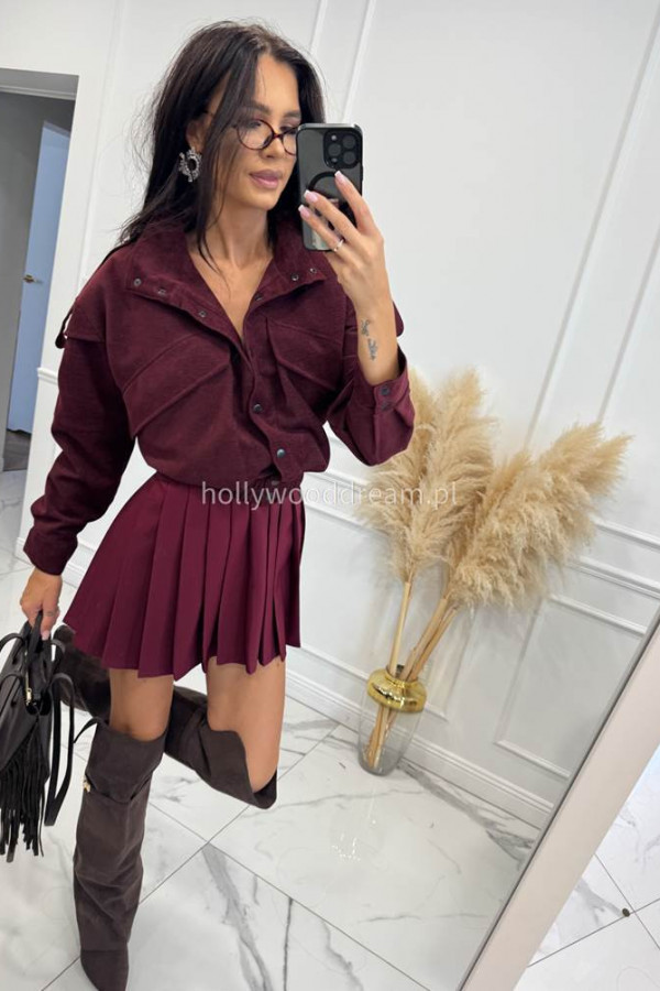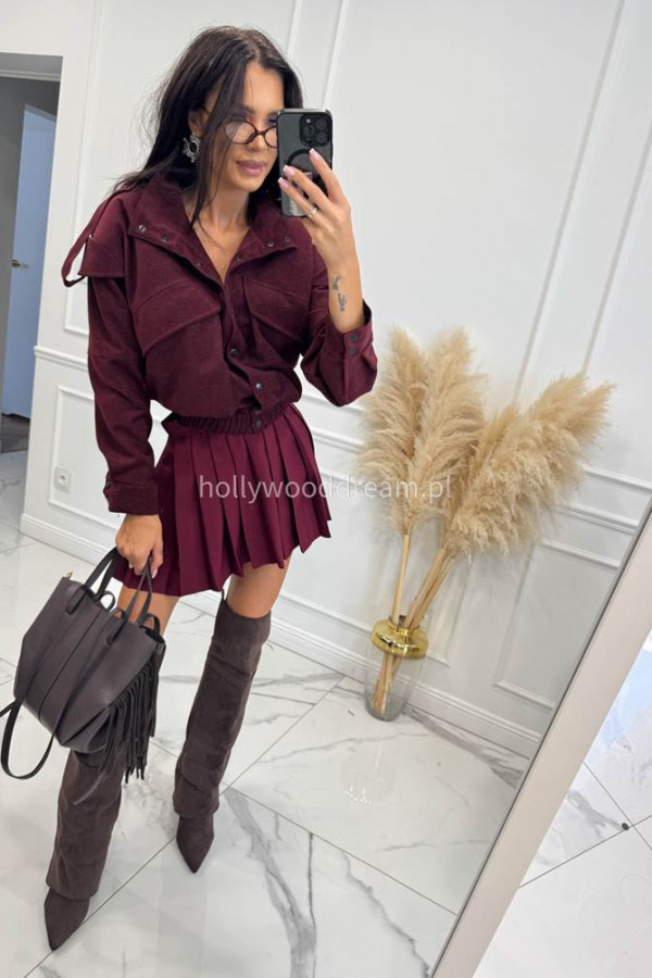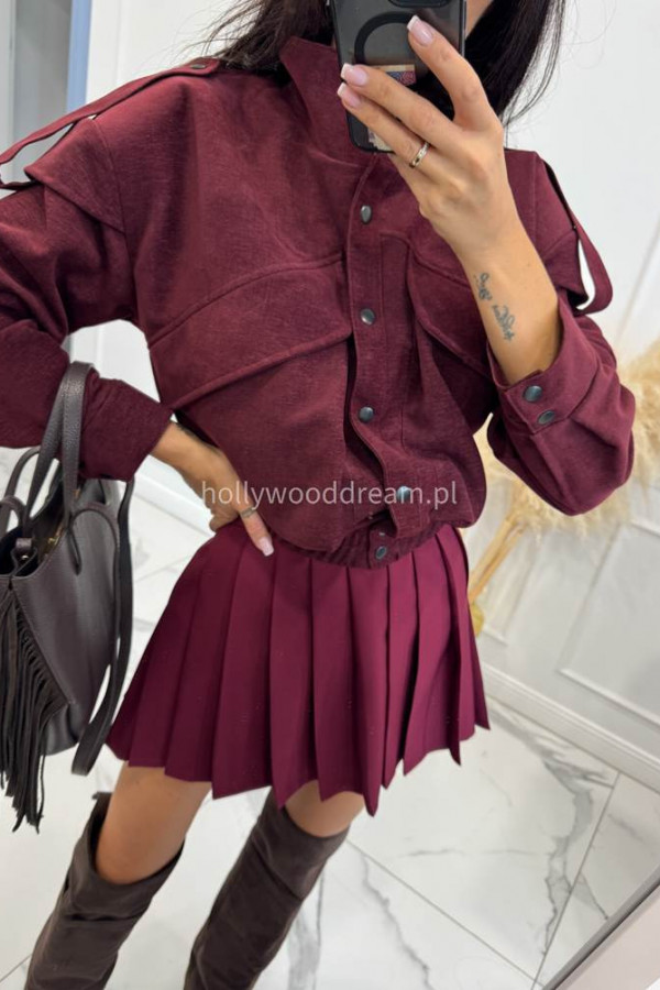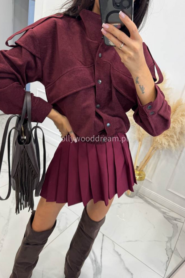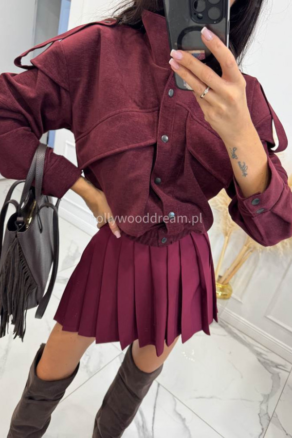 Kurtka materiałowa z dużymi kieszeniami bordowa IZABELLA 131