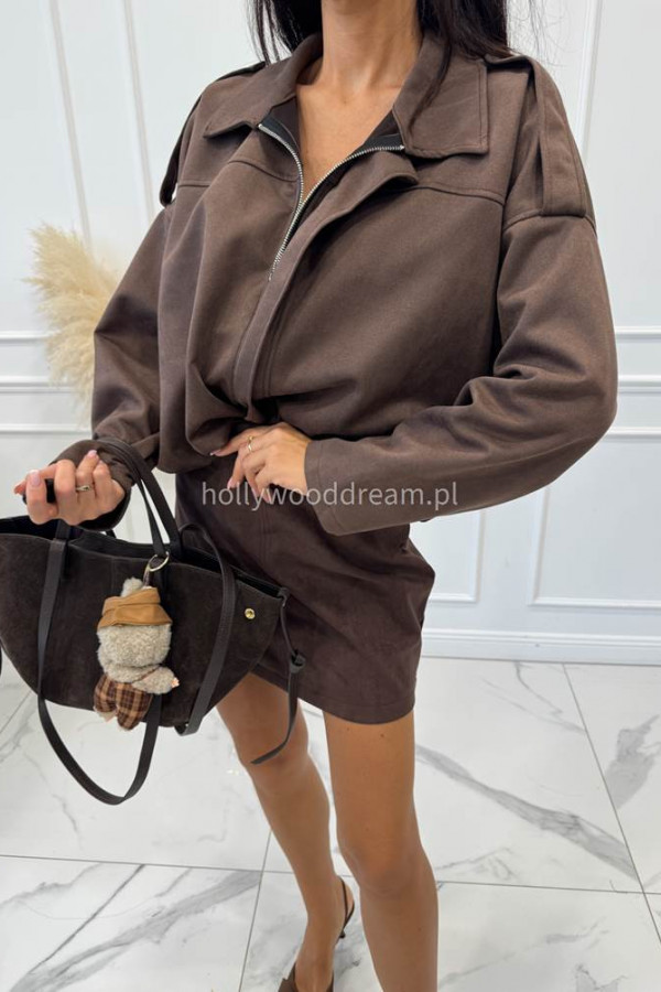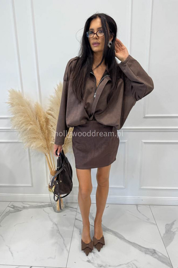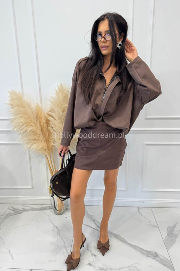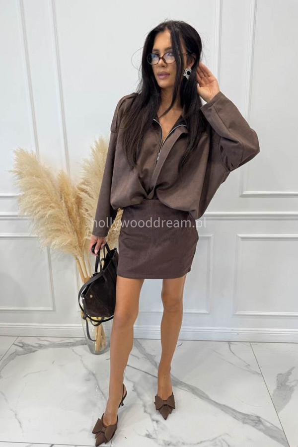 Spódniczka mini zamszowa zapinana na zamek brązowa LIZA 01