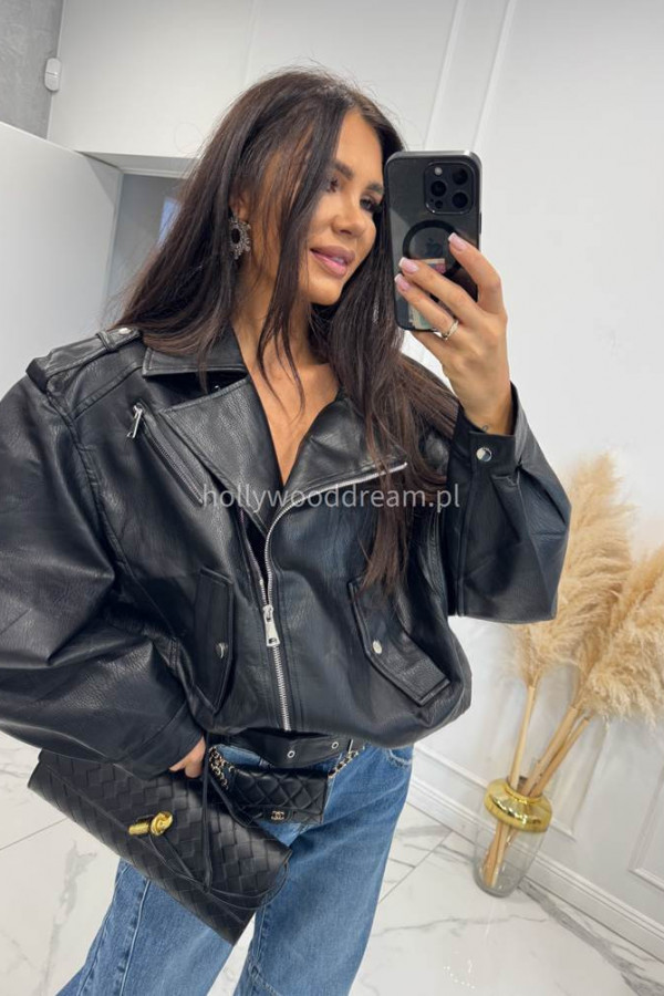 Kurtka oversize z eko skóry z zamkami czarna PATRYK 09
