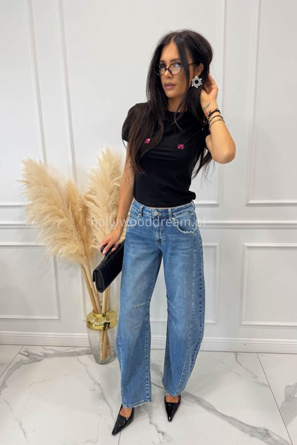 - Koszulka na krótki rękaw z kokardkami czarna LOLA