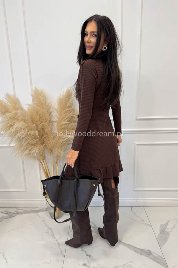 Sukienka midi z wafelkową fakturą ze złotymi guzikami czekoladowa ANASTAZJA 09