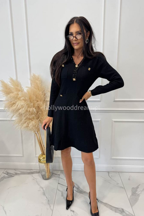 Sukienka midi z wafelkową fakturą ze złotymi guzikami czarna ANASTAZJA 09