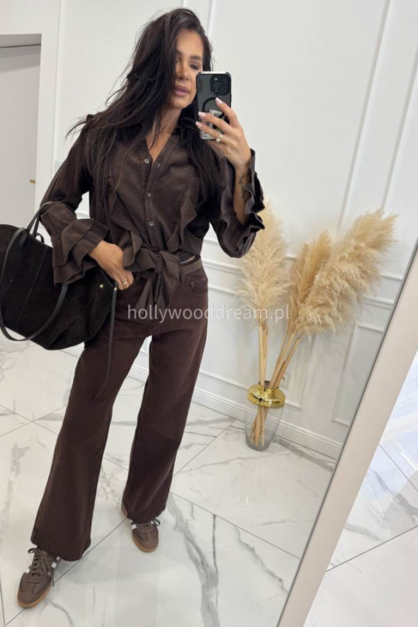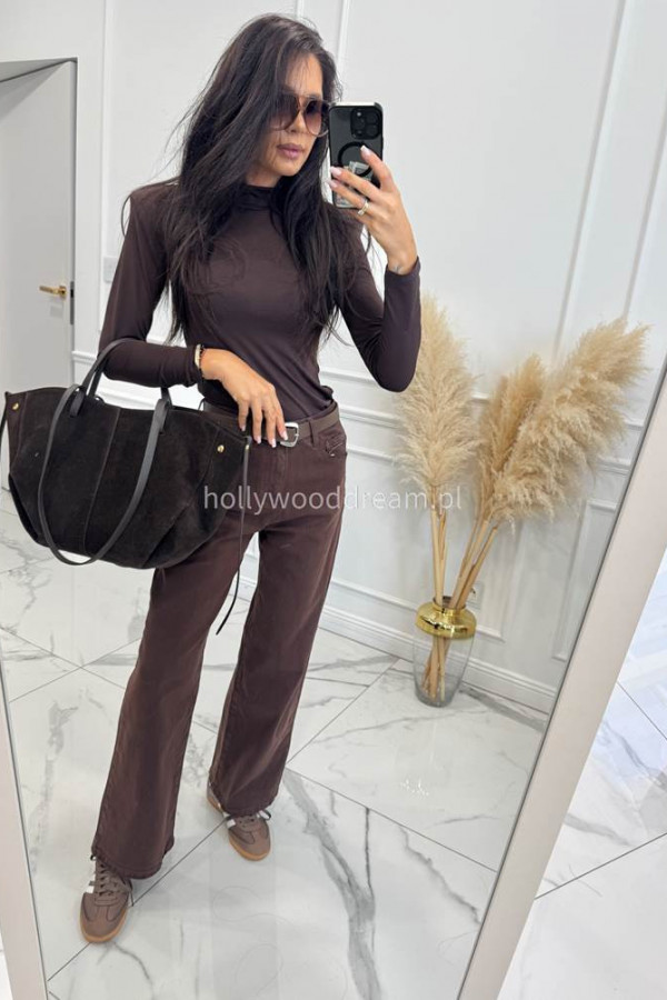 - Spodnie dzwony z paskiem czekoladowe Kastro
