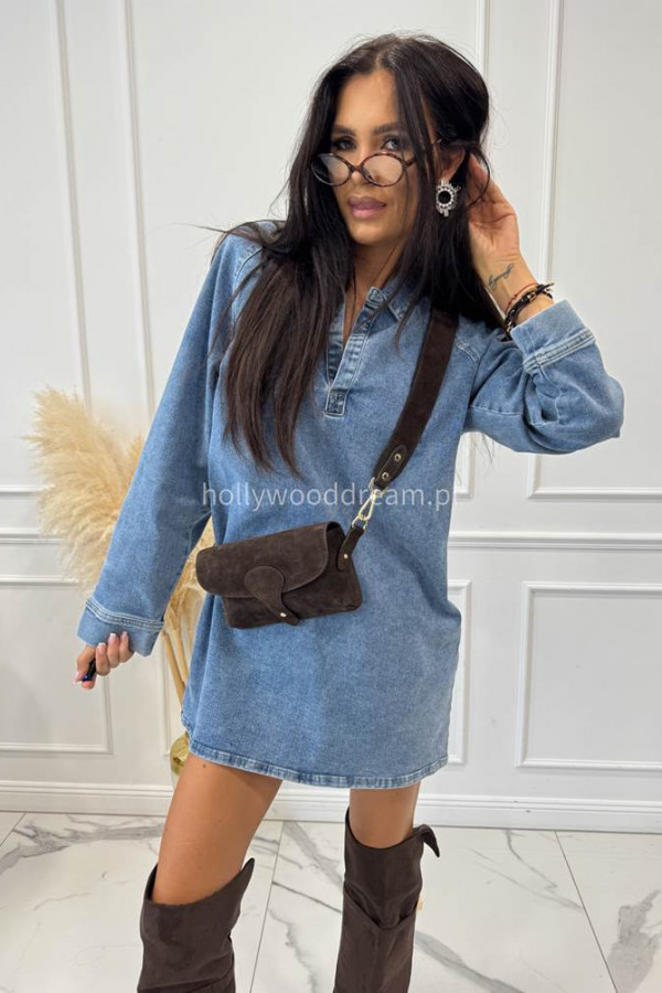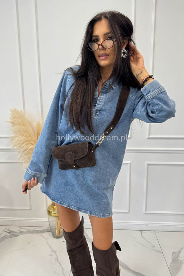 - Sukienka jeansowa luźna na długi rękaw SABINA
