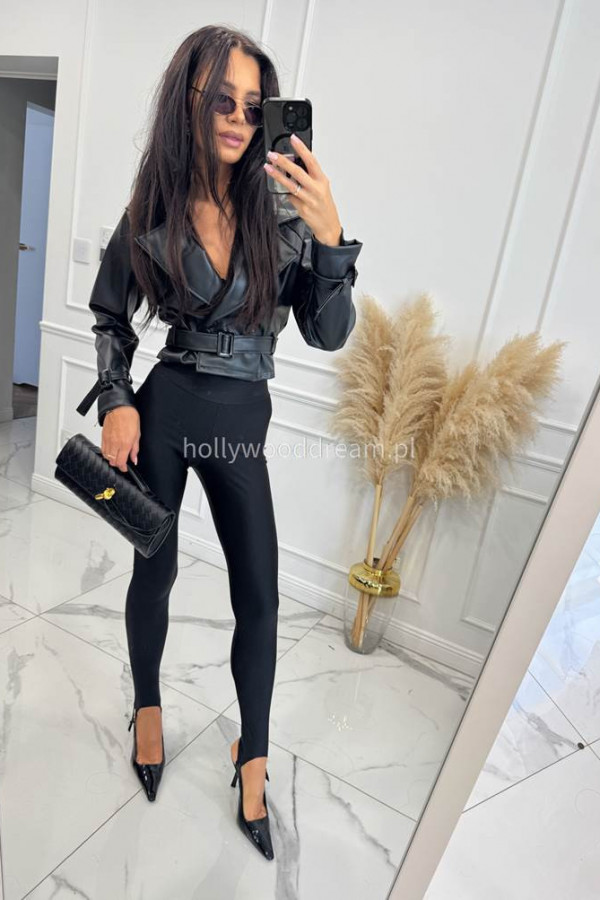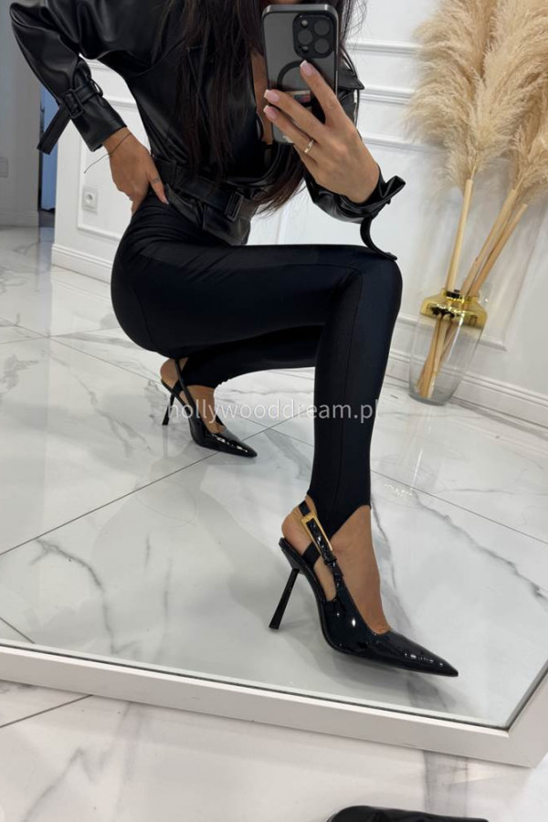 - Legginsy shine z zapiętką czarne Kamila 185gładkie