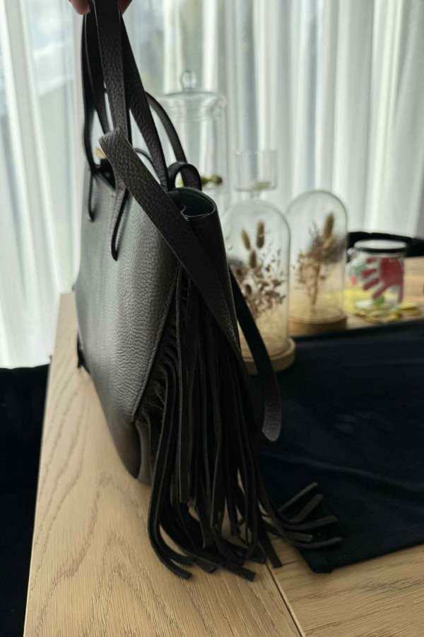 Torebka mała skórzana z frędzlami brązowa Nita to idealne połączenie stylu boho i codziennej wygody. Mały rozmiar i miękki skórzany materiał czynią ją lekką i poręczną, a ozdobne frędzle dodają charakteru i ruchu każdej stylizacji. Dzięki krótkim uchwytom i klasycznemu krojowi torebka świetnie sprawdzi się zarówno do casualowych zestawów, jak i bardziej kobiecych looków. Nita to must-have dla kobiet, które kochają detale i modny, miejski styl.