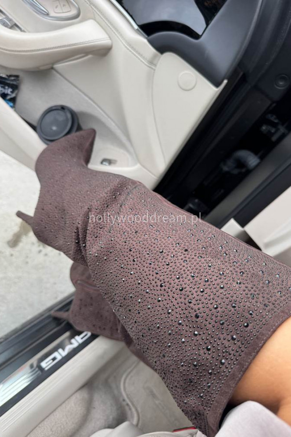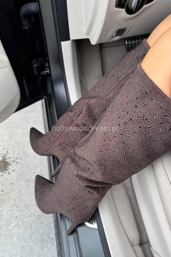 Czekoladowe kozaki na szpilce z czarnymi cekinami NADIA