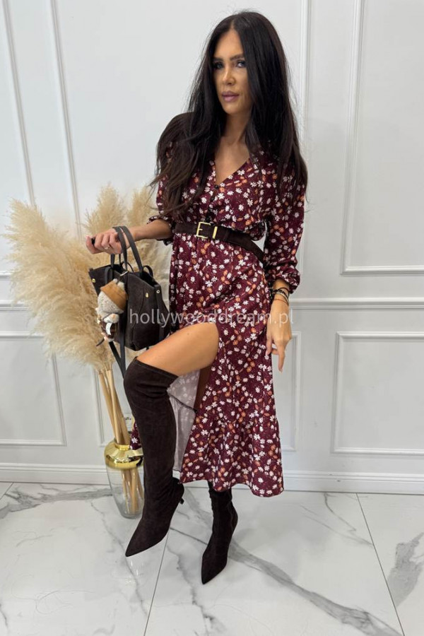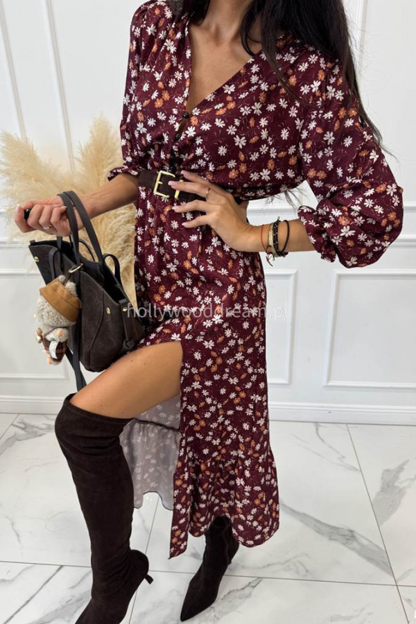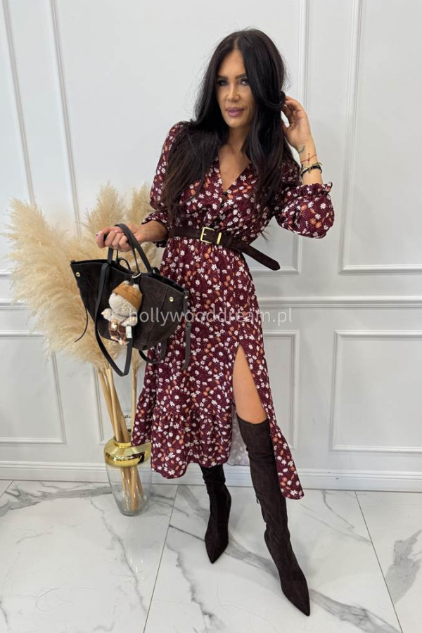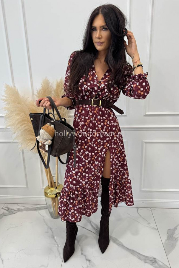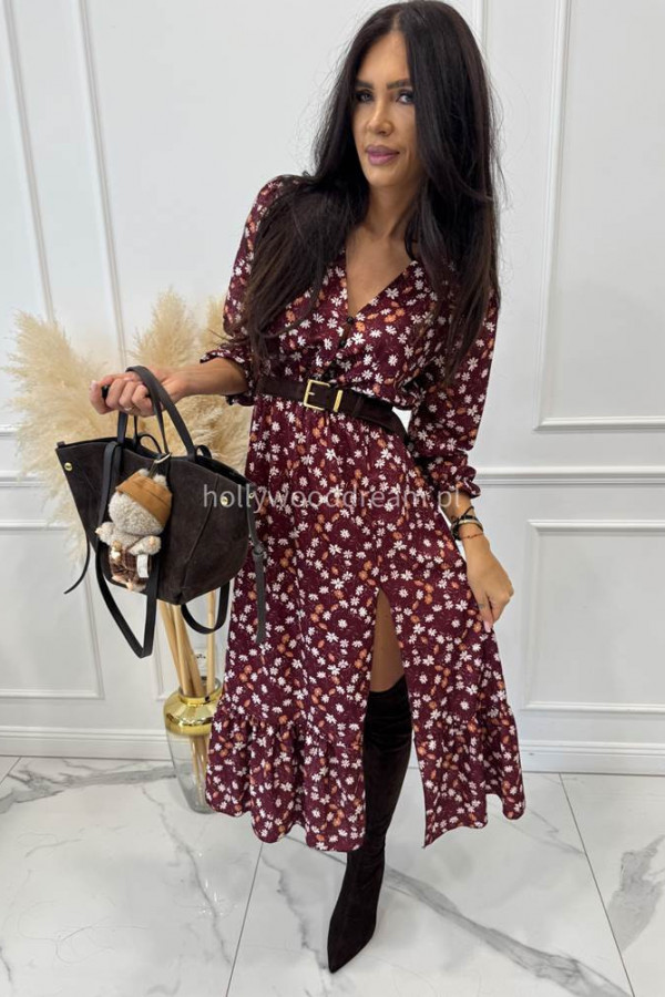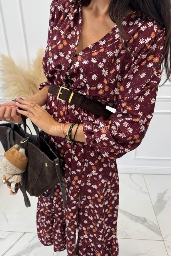 - Bordowa sukienka w kolorowe kwiatki z guzikami na dekolcie Applejack 172