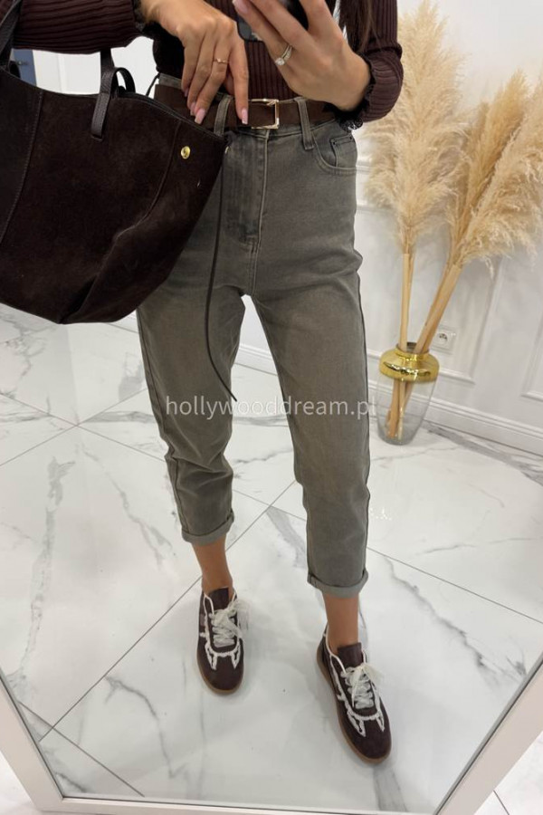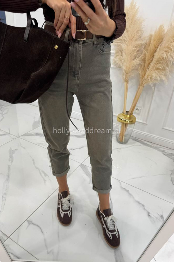 - Szare spodnie jeansowe z naszywką na tylnej kieszeni DENIM