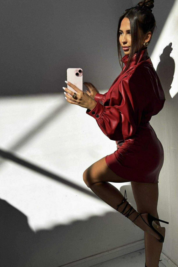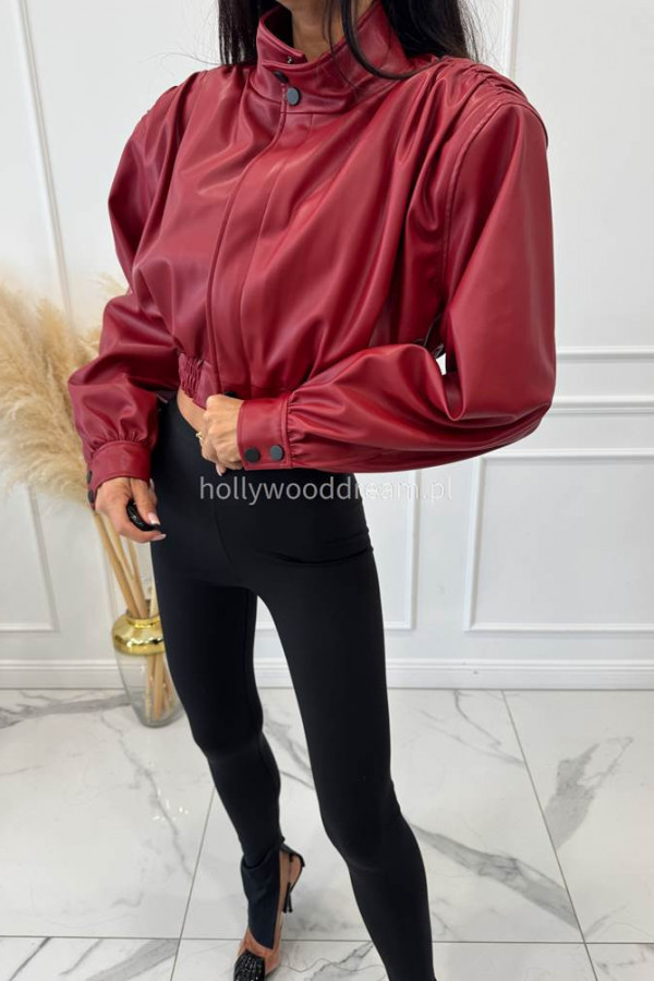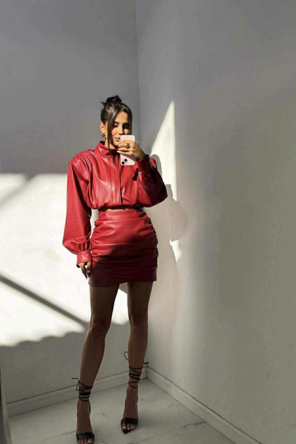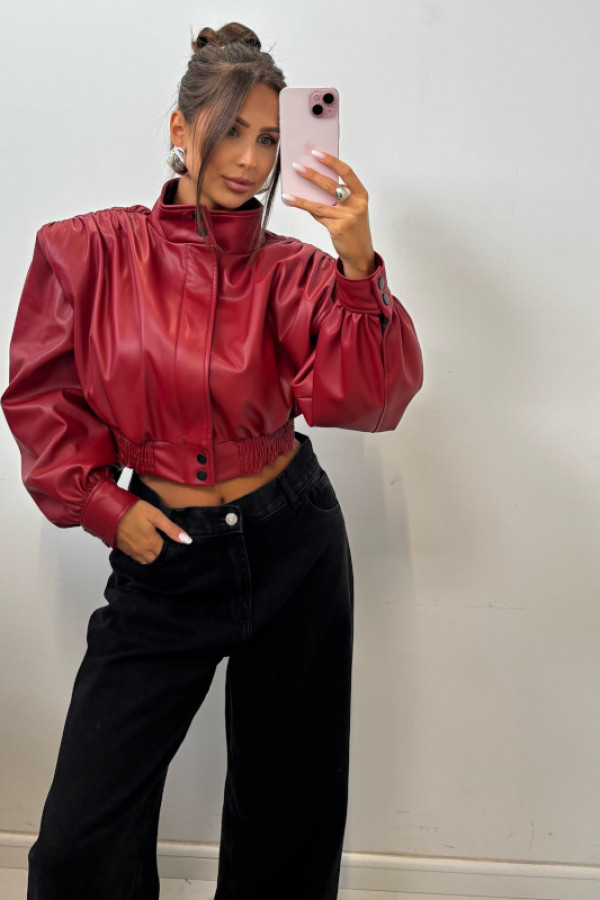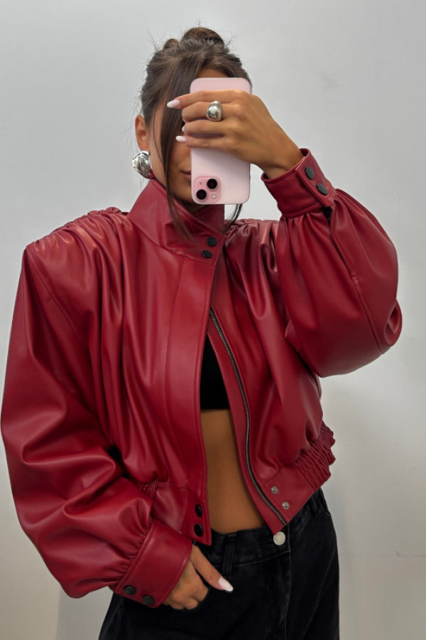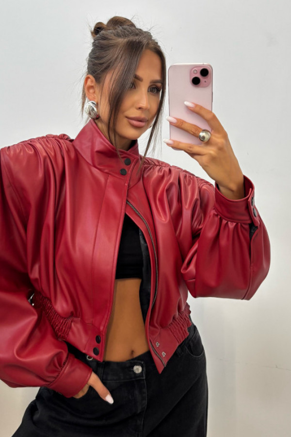 Czerwona kurtka z eko skóry z marszczeniami na ramionach Fabiola 69
