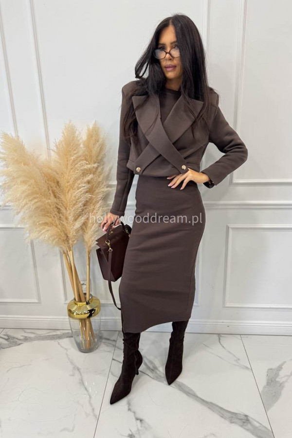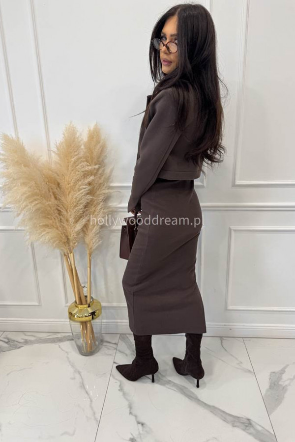 Czekoladowy komplet marynarka + sukienka maxi ELI 121