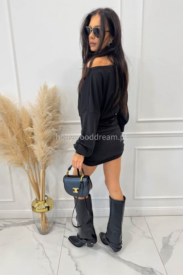 Czarna sukienka mini na długi rękaw z marszczeniem i górą oversize GRACE 17