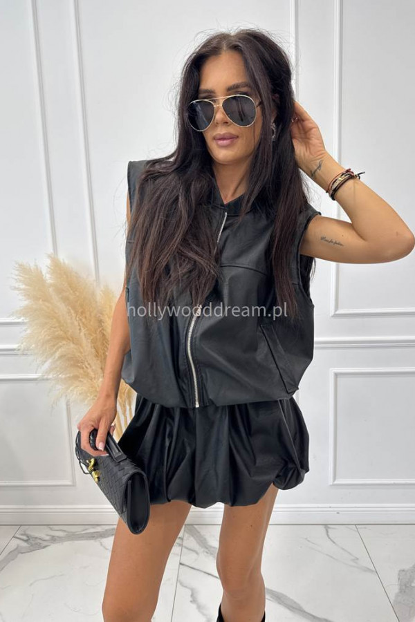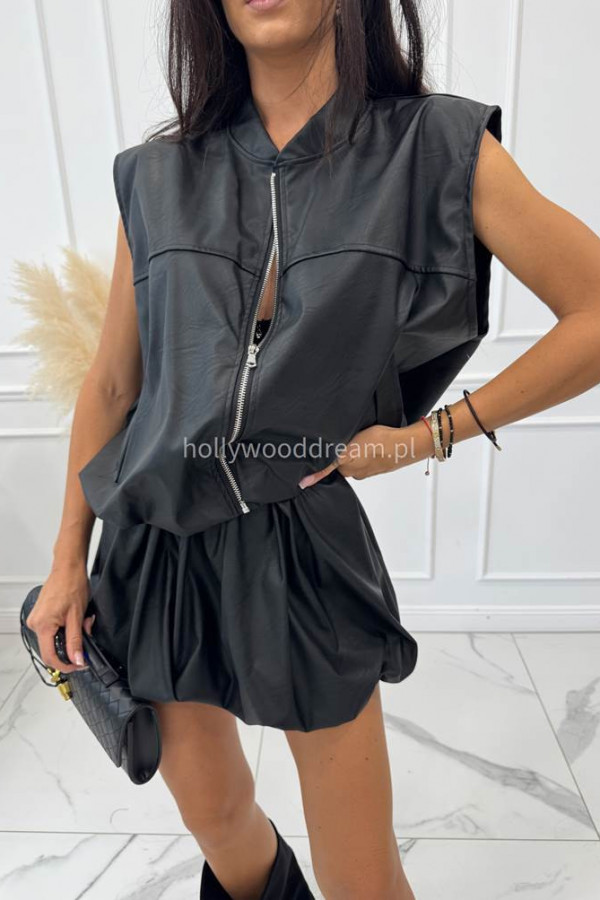 - Czarny komplet skórzany kamizelka+ spódniczka mini bombka MILKY