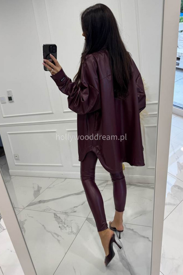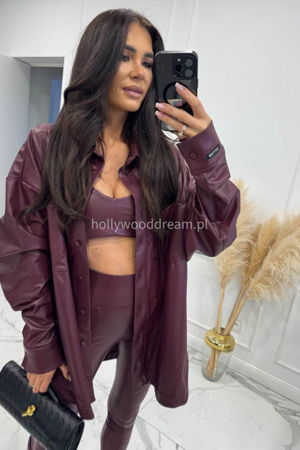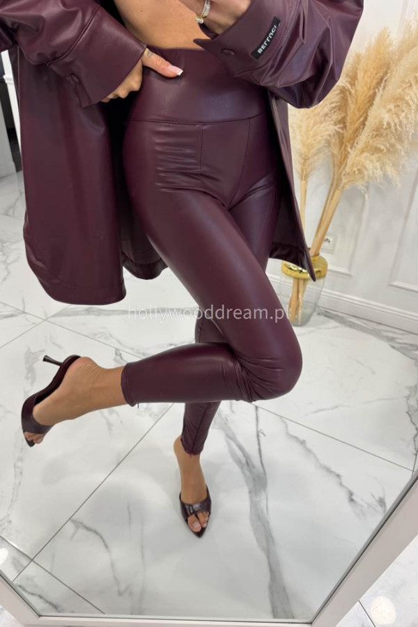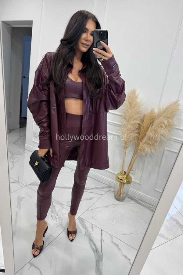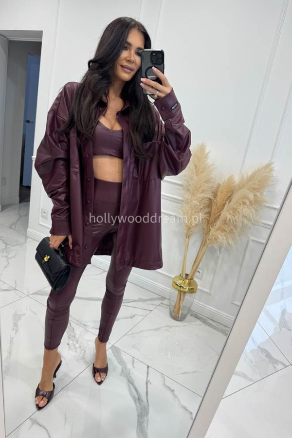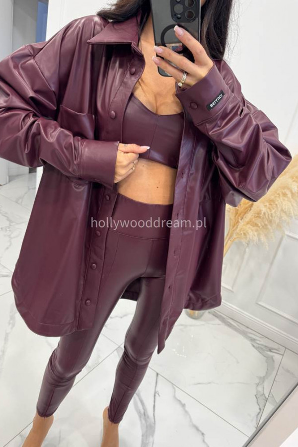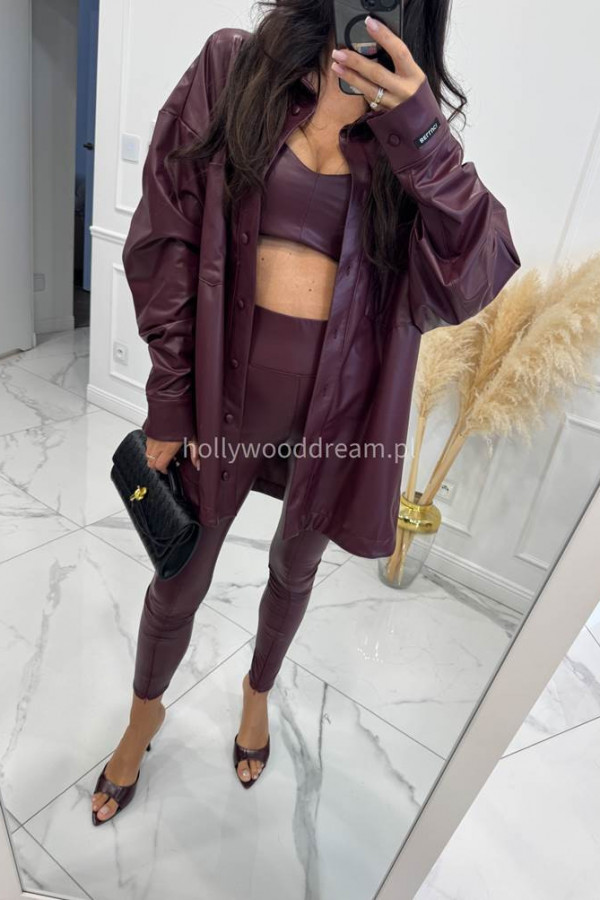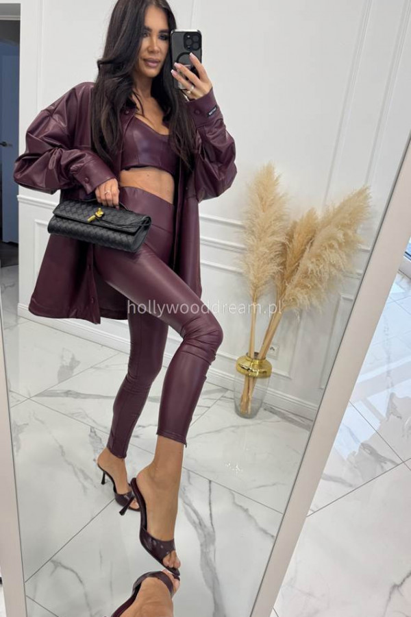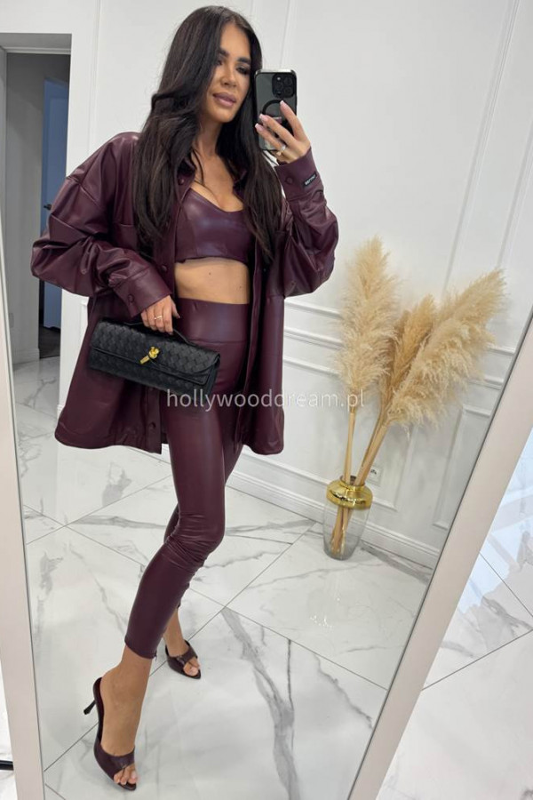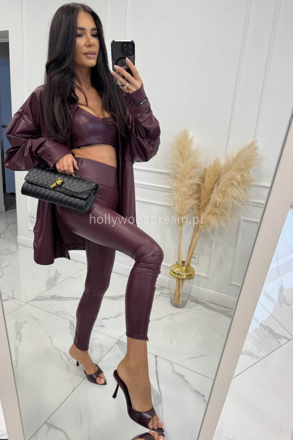 Bordowy komplet skórzany koszula+top+legginsy BRANDON 161