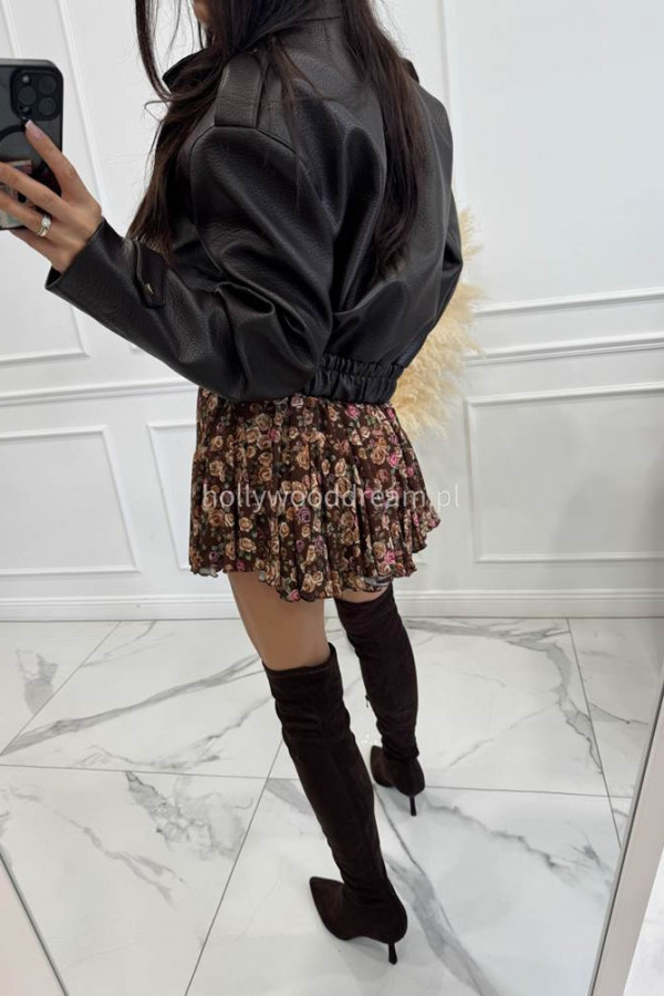 Brązowa spódnica mini z wiskozą w kwiaty Nita 172