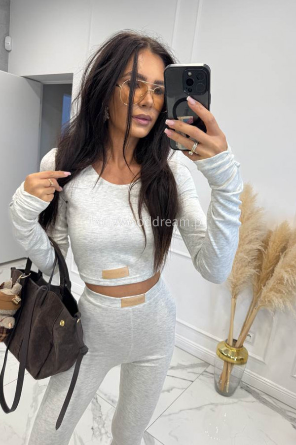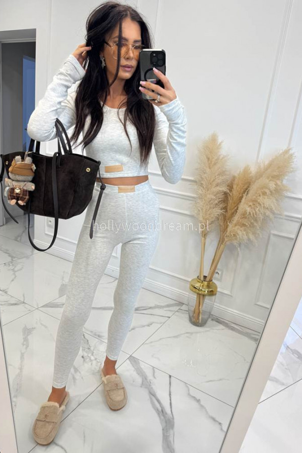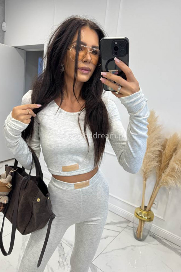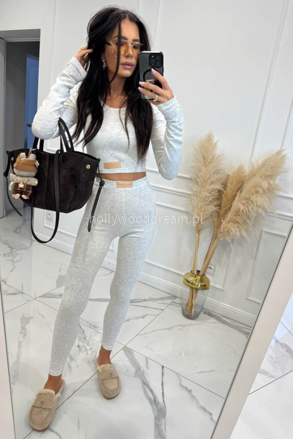 Szaro melanżowy komplet z wiskozy top+legginsy MICHALINA 155