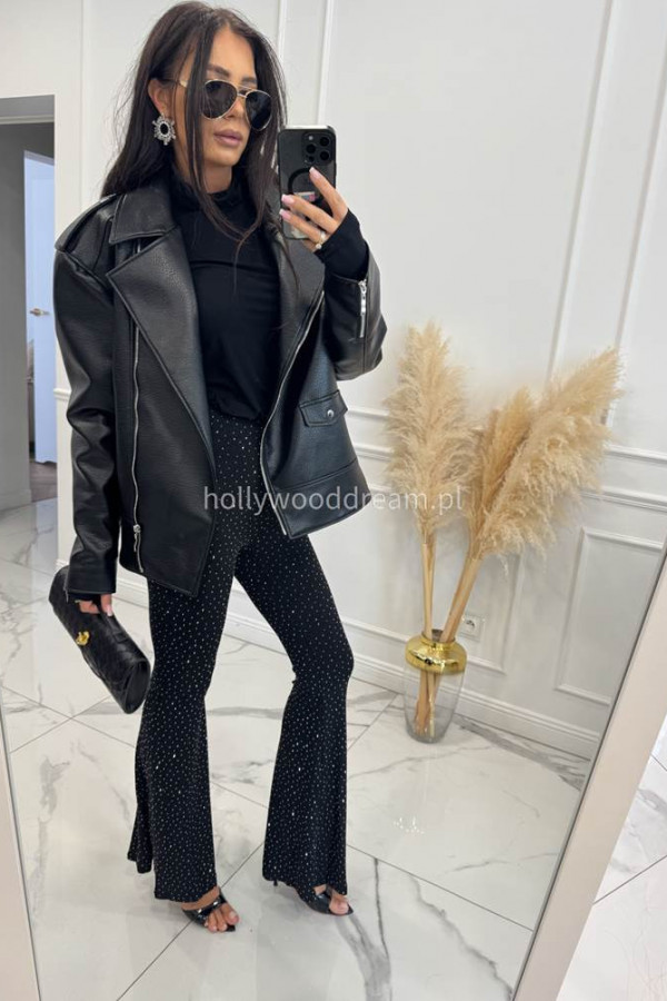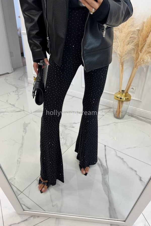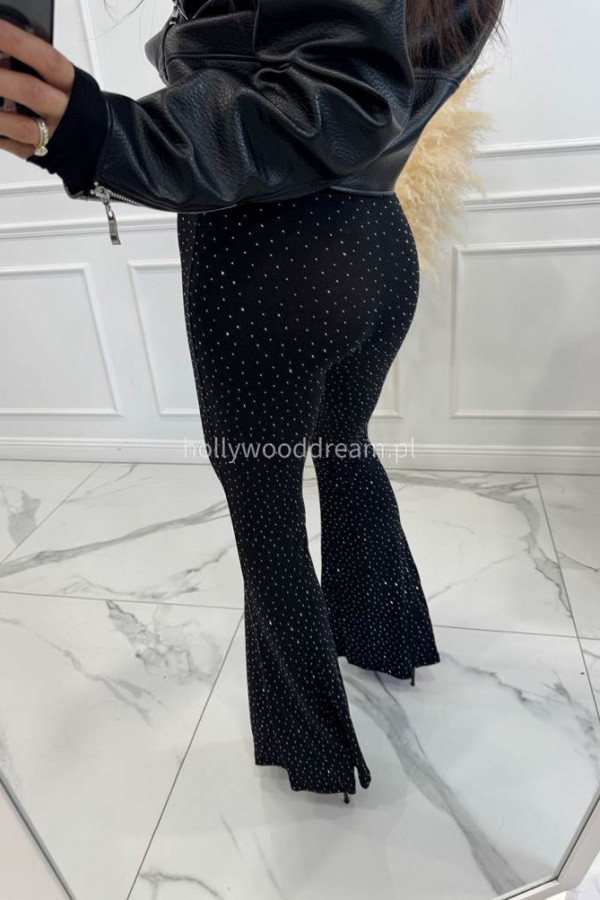 Czarne legginsy dzwony Morfi 24 to efektowny model zdobiony połyskującymi cekinami, które nadają im wyjątkowego charakteru. Elastyczny materiał dopasowuje się do sylwetki, jednocześnie podkreślając nogi i zapewniając komfort noszenia. Idealne na wieczorne wyjścia, imprezy i stylizacje, w których chcesz zabłysnąć.
