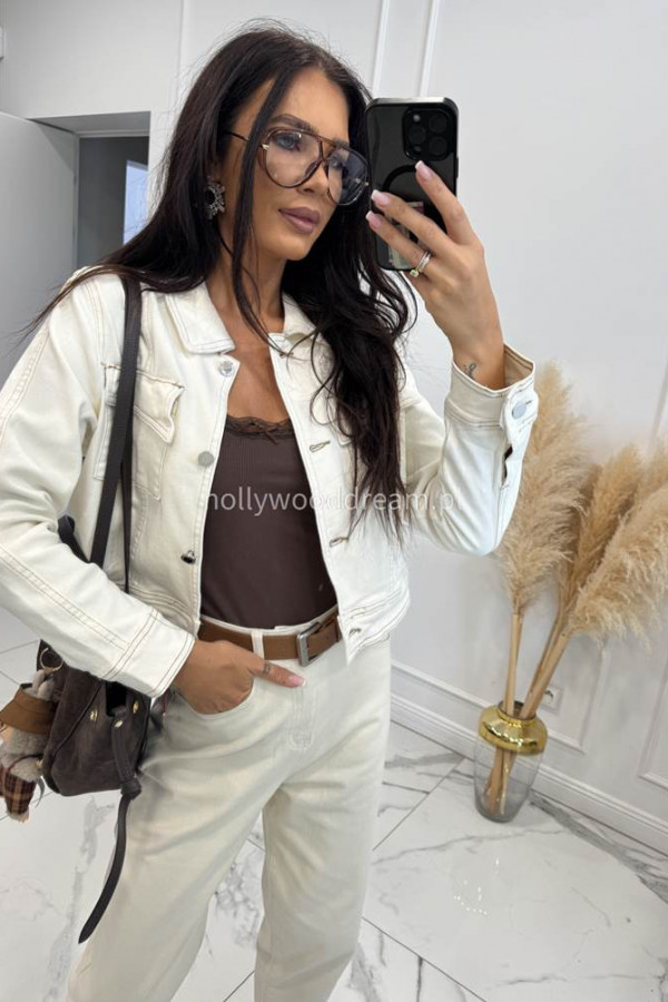 Kremowa kurtka jeans Sara to dopasowany model zapinany na guziki, który łączy klasykę z nowoczesnym stylem. Wykonana z trwałego materiału, zapewnia wygodę i idealnie dopasowuje się do sylwetki. Uniwersalny kolor sprawia, że kurtka pasuje do wielu stylizacji na co dzień i na wyjątkowe okazje.