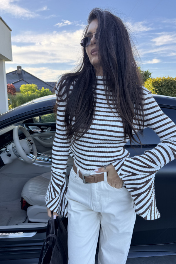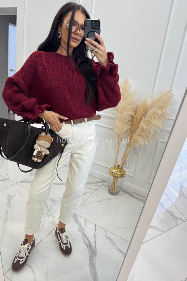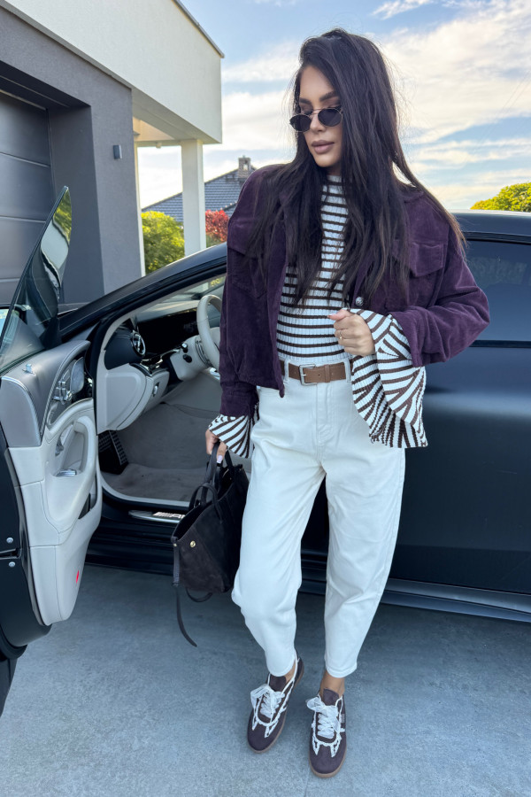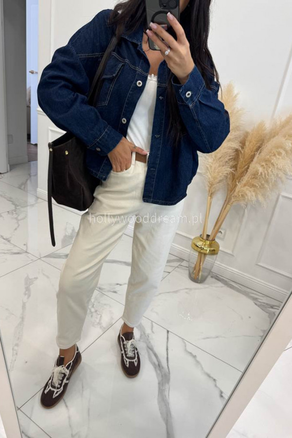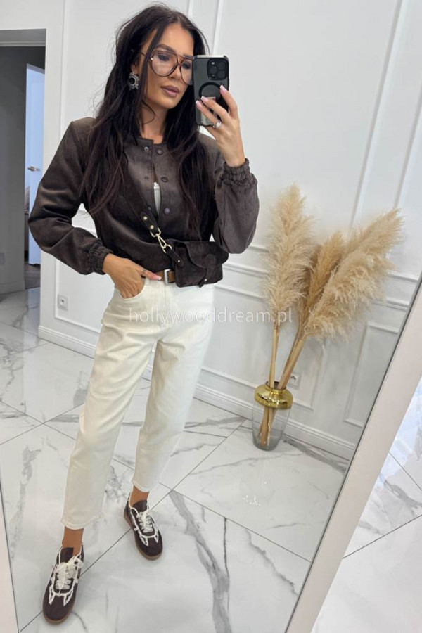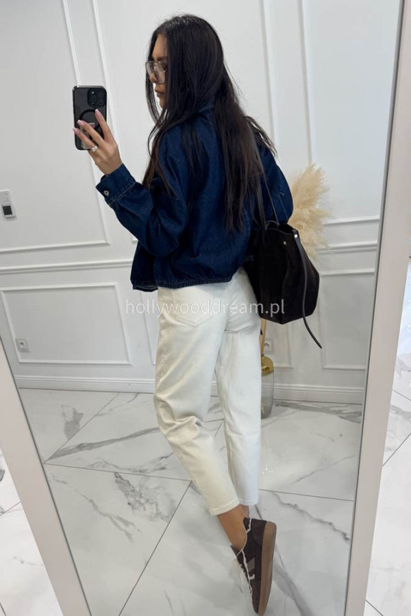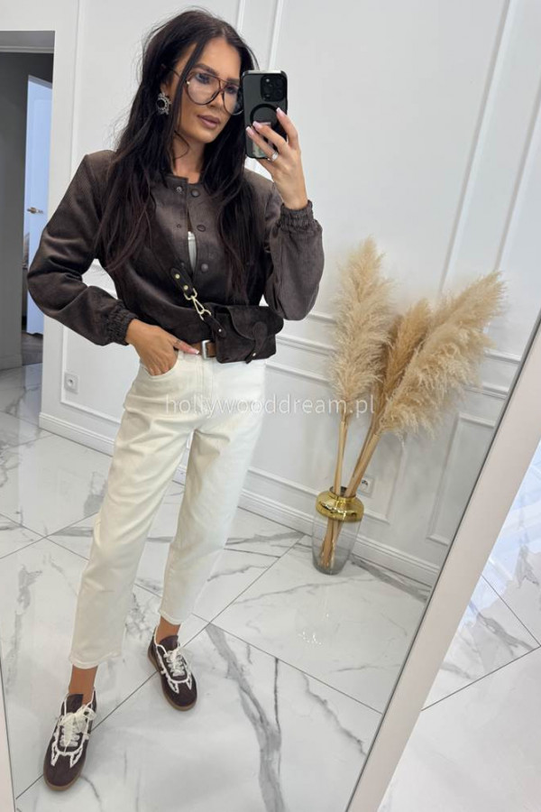 Kremowe spodnie jeans z paskiem Fobis to nowoczesna odsłona wygody i luzu. Spodnie typu balloon charakteryzują się szerszym fasonem w biodrach i delikatnym zwężeniem ku dołowi, co tworzy modny, nonszalancki look z nutą retro. Wykonane z miękkiego, oddychającego materiału w uniwersalnym kremowym odcieniu, zapewniają komfort przez cały dzień. Elastyczny pas i praktyczne kieszenie sprawiają, że spodnie są idealnym wyborem zarówno na co dzień, jak i w stylizacjach smart casual. Doskonale prezentują się z dopasowaną górą, oversize'ową koszulą czy basicowym t-shirtem.