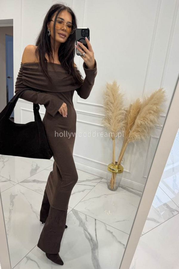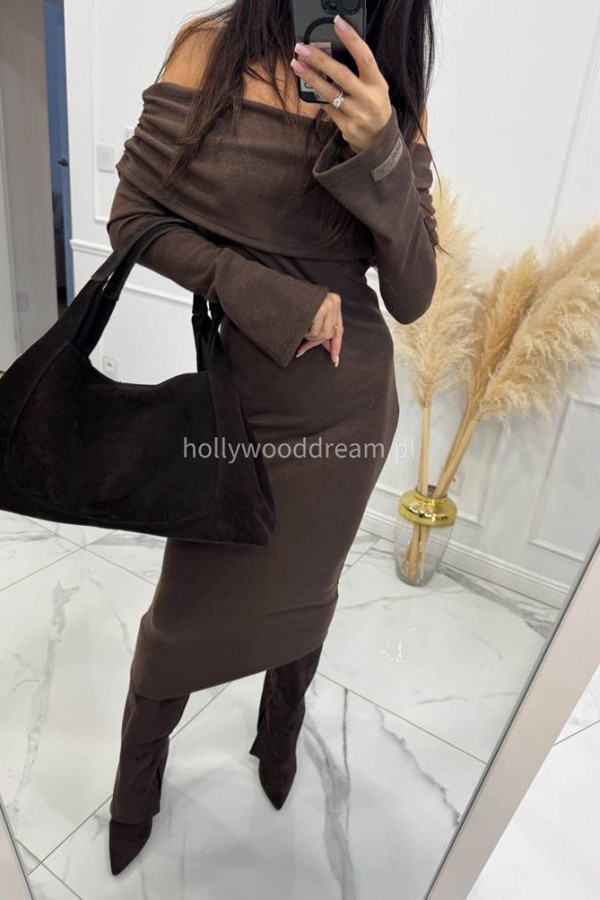 Czekoladowa Sukienka midi hiszpanka sweterkowa Doroti 185