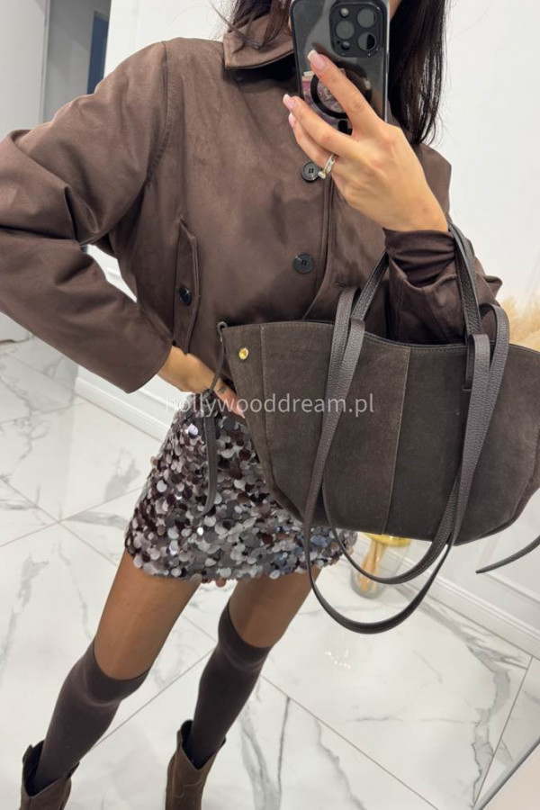 Brązowa bomberka Maron wykonana z wysokiej jakości zamszu łączy klasykę z nowoczesnym stylem. Kurtka zapinana na guziki posiada kołnierzyk i miękką podszewkę, zapewniając komfort noszenia. Idealna do codziennych i casualowych stylizacji, dodaje elegancji każdej jesiennej lub wiosennej kreacji.
