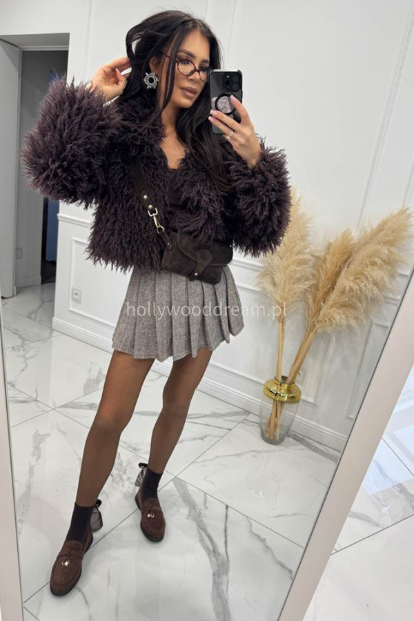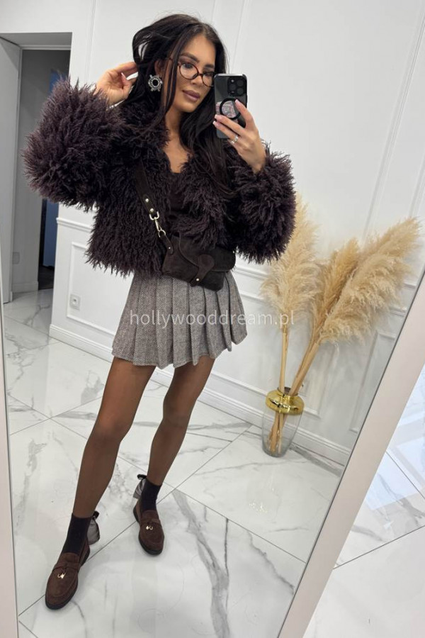 Czekoladowe Futerko krótkie z karbowanym włosem BIANKA 09