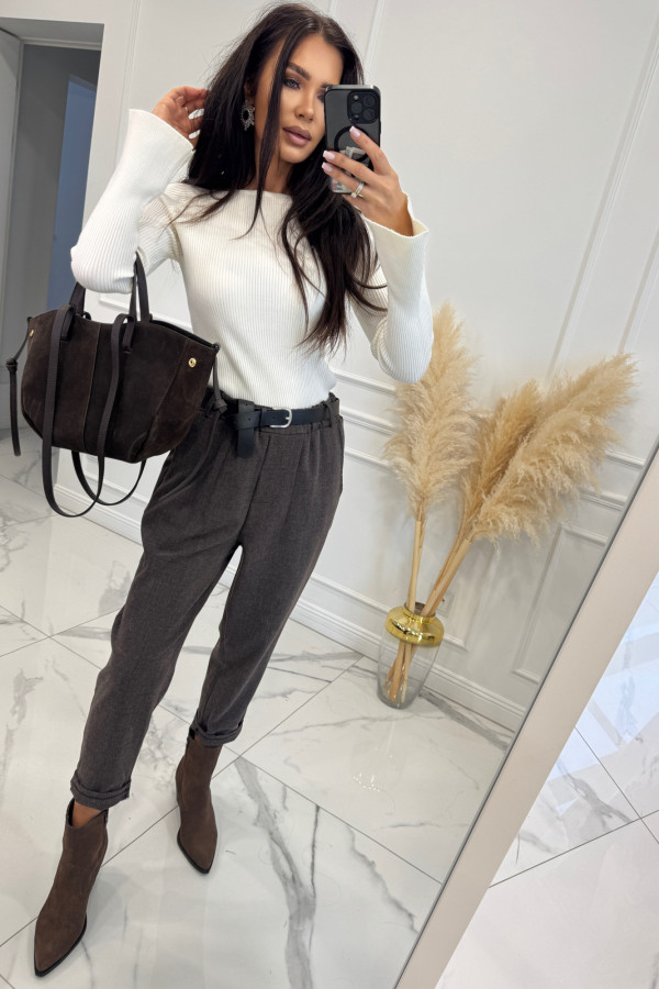 Kremowa bluzka sweterkowa z ozdobnymi guziczkami OLA zachwyca subtelnymi detalami. Model OLA wykonany jest z miękkiej, przyjemnej w dotyku dzianiny, która gwarantuje komfort noszenia i doskonale dopasowuje się do sylwetki. Kremowy kolor nadaje jej ponadczasowej elegancji, a ozdobne guziczki dodają całości szyku i kobiecego charakteru. Uniwersalny fason sprawia, że bluzka świetnie sprawdzi się zarówno w stylizacjach codziennych, jak i bardziej eleganckich – do pracy, na spotkania czy wieczorne wyjścia.