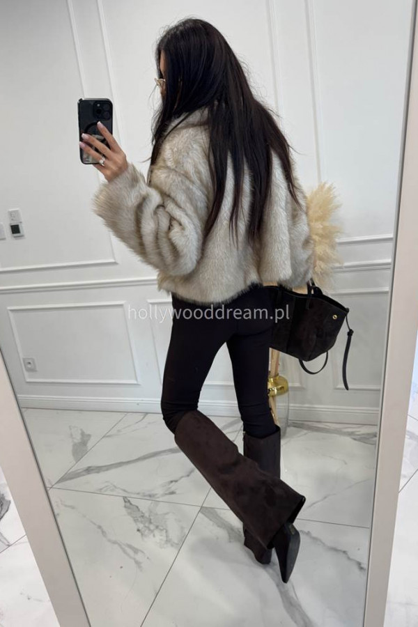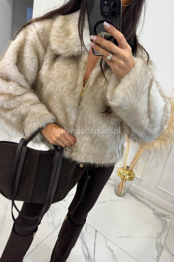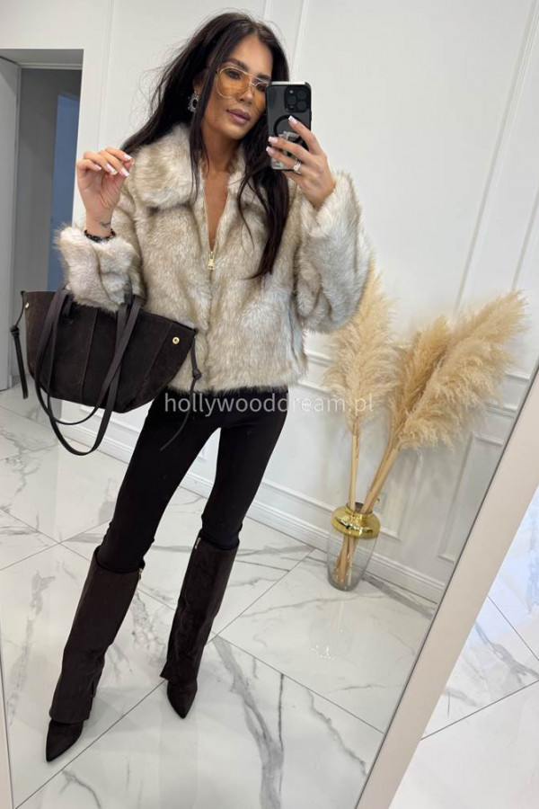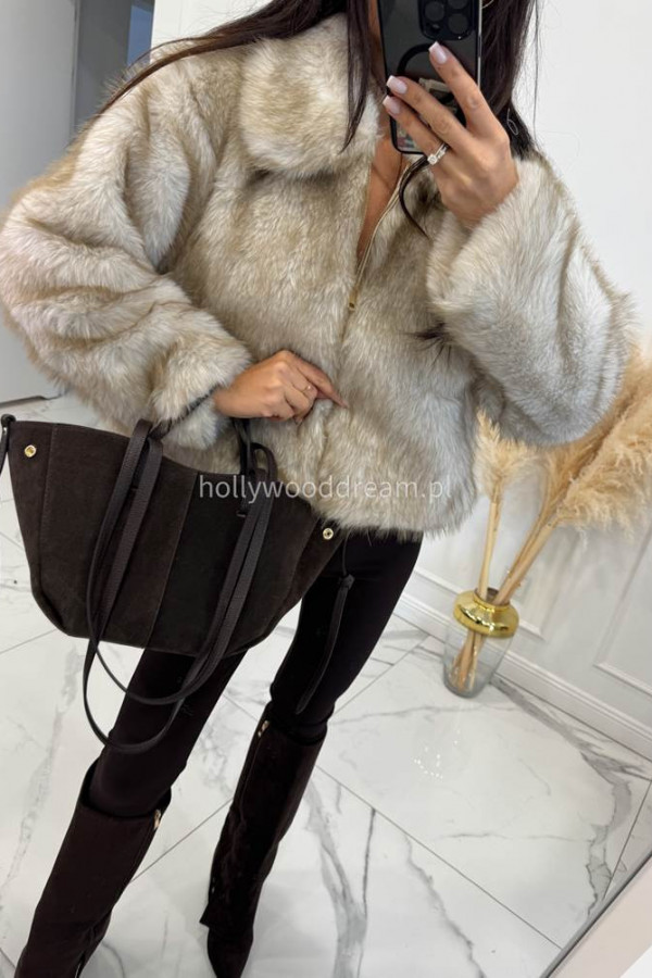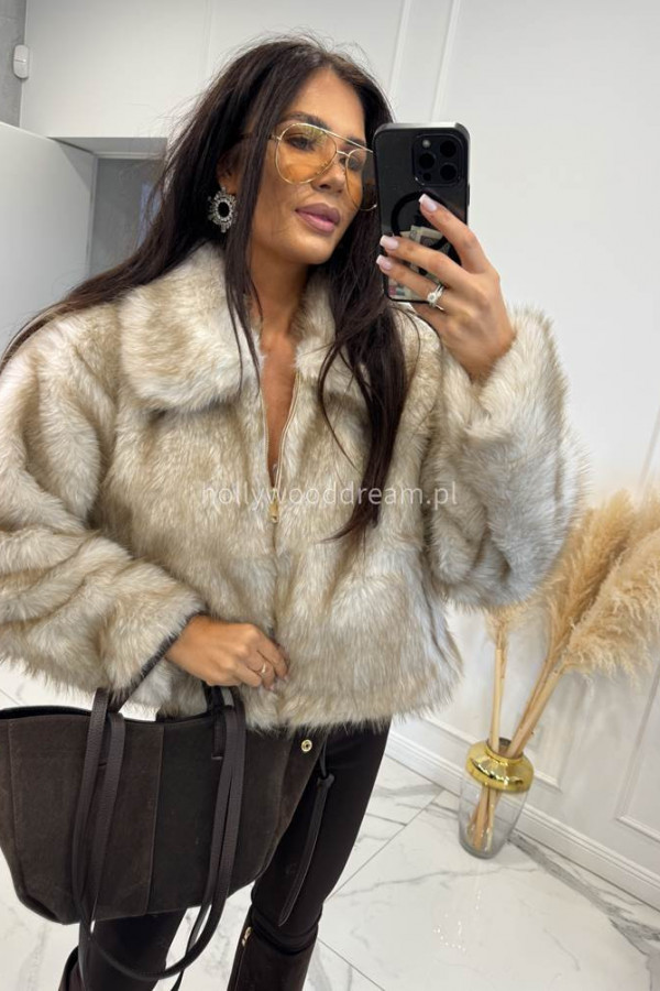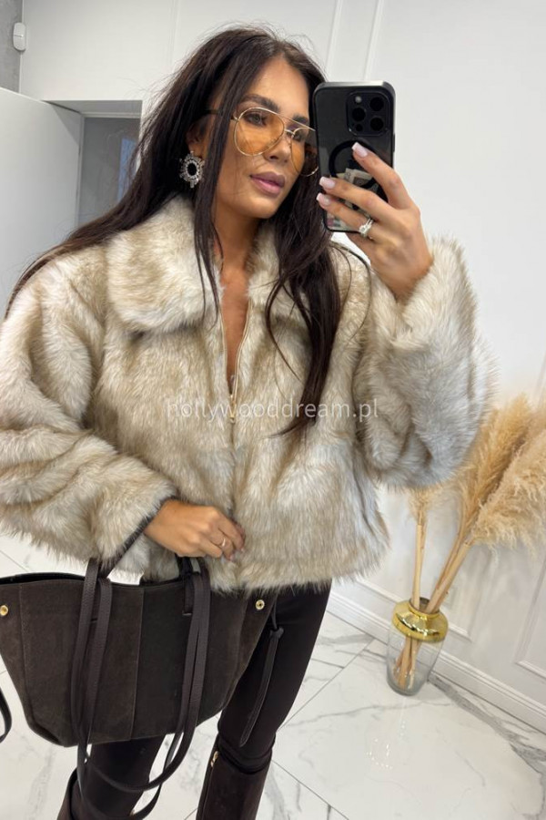 Beżowo-czarne futro zapinane na zamek Robert 09