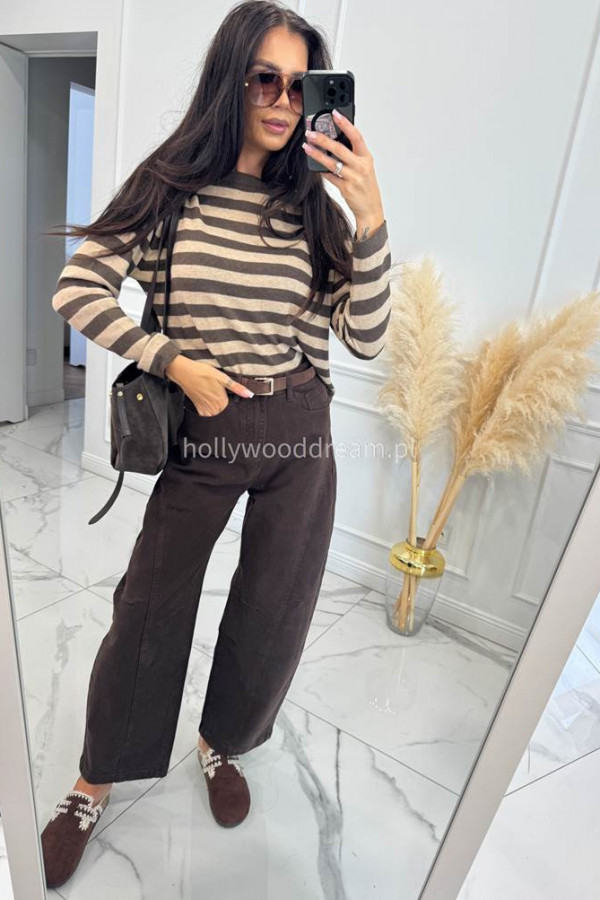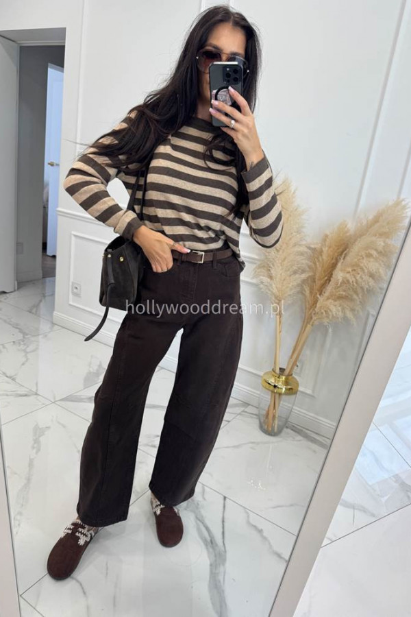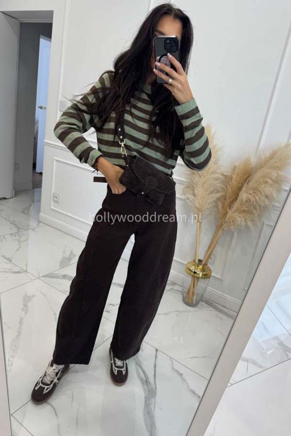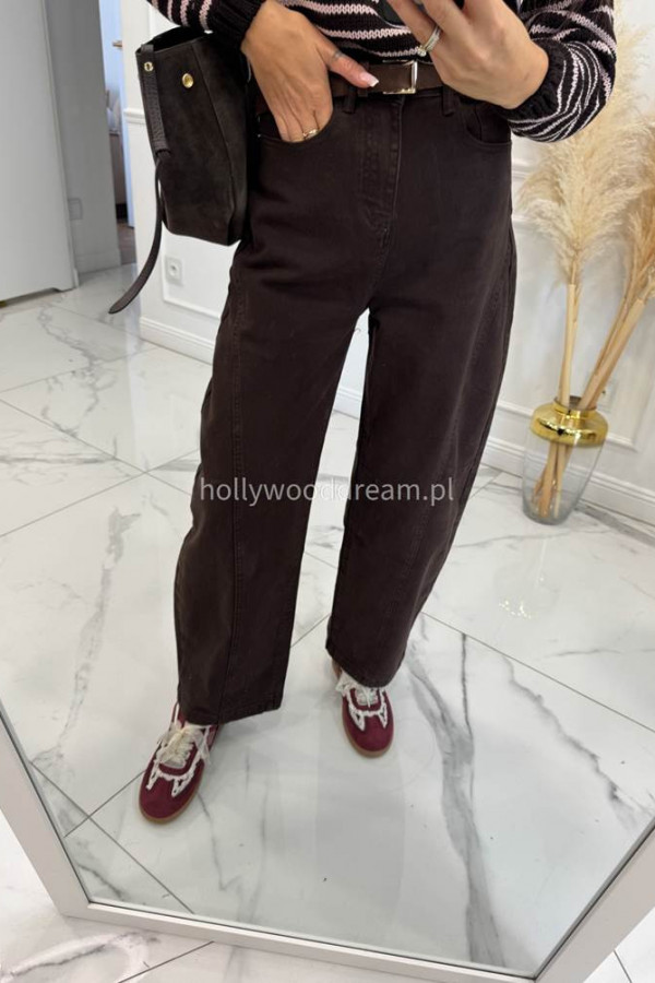 Czekoladowe spodnie Baggy jeans 192 to wygodny i modny fason z luźniejszą nogawką, idealny do codziennych stylizacji. Wykonane z wytrzymałego jeansu, gwarantują komfort i swobodę ruchów. Stylowy kolor sprawia, że świetnie komponują się zarówno z casualowymi, jak i eleganckimi dodatkami.