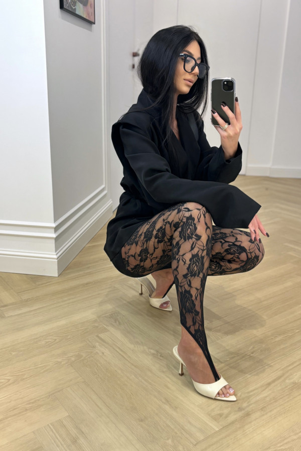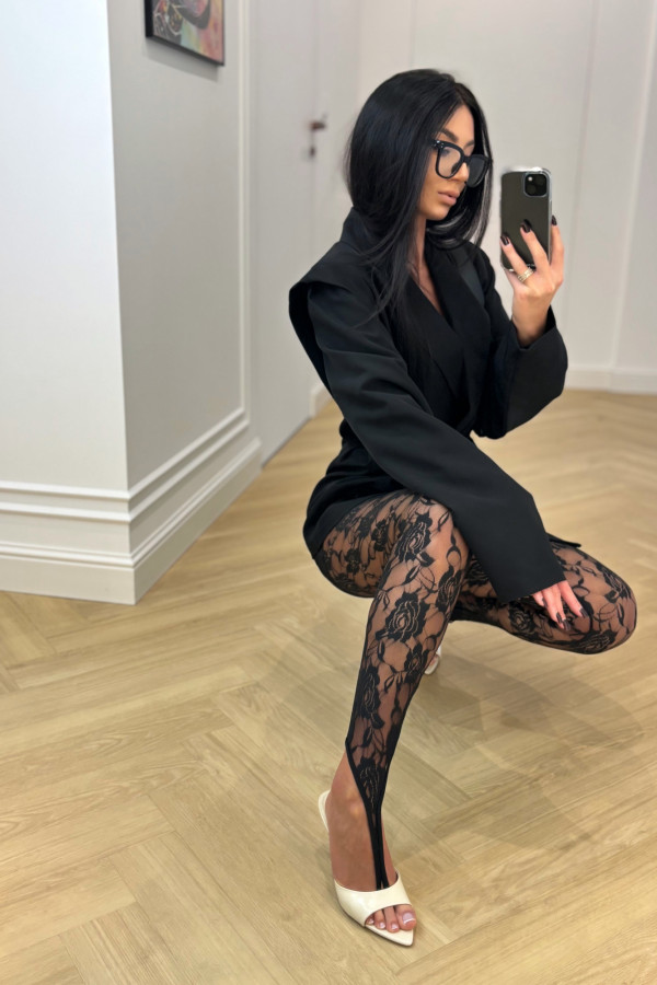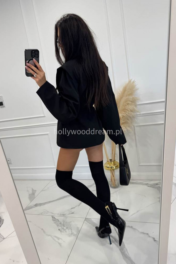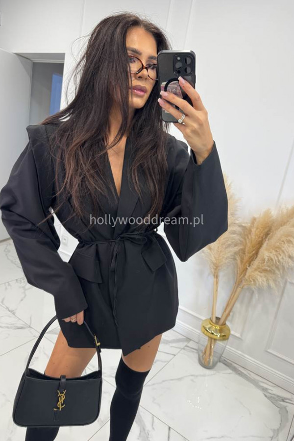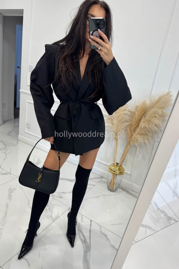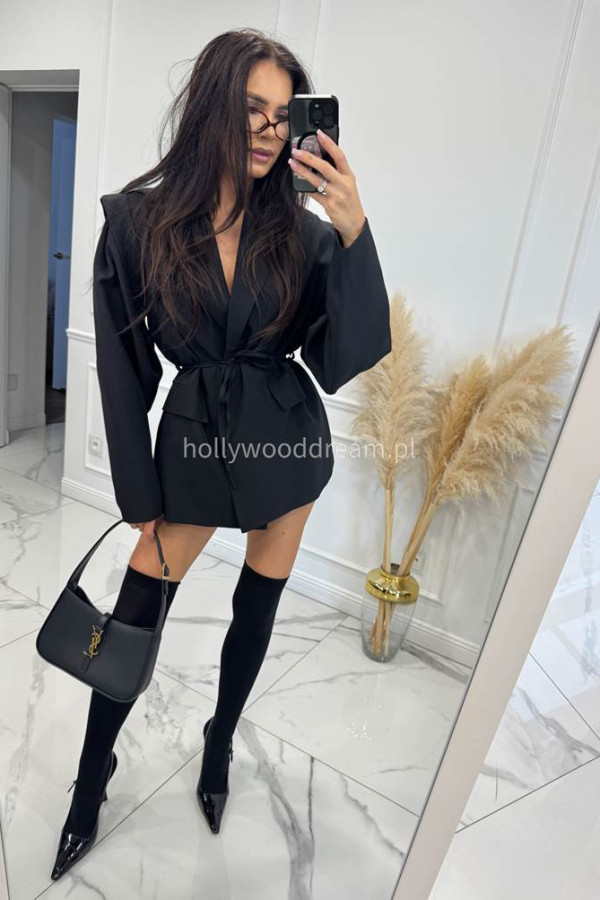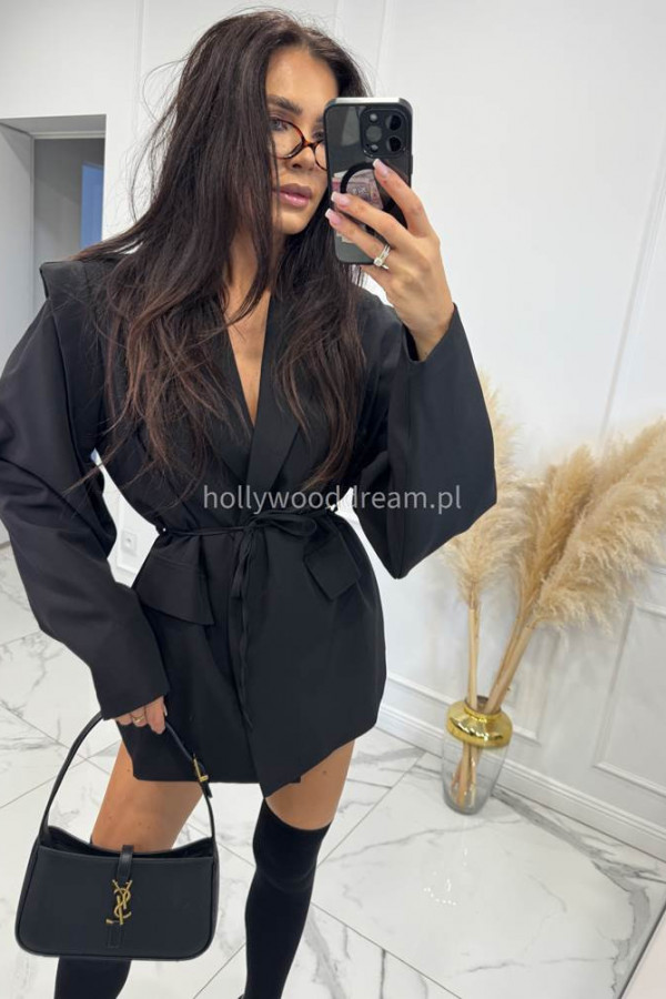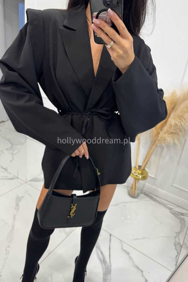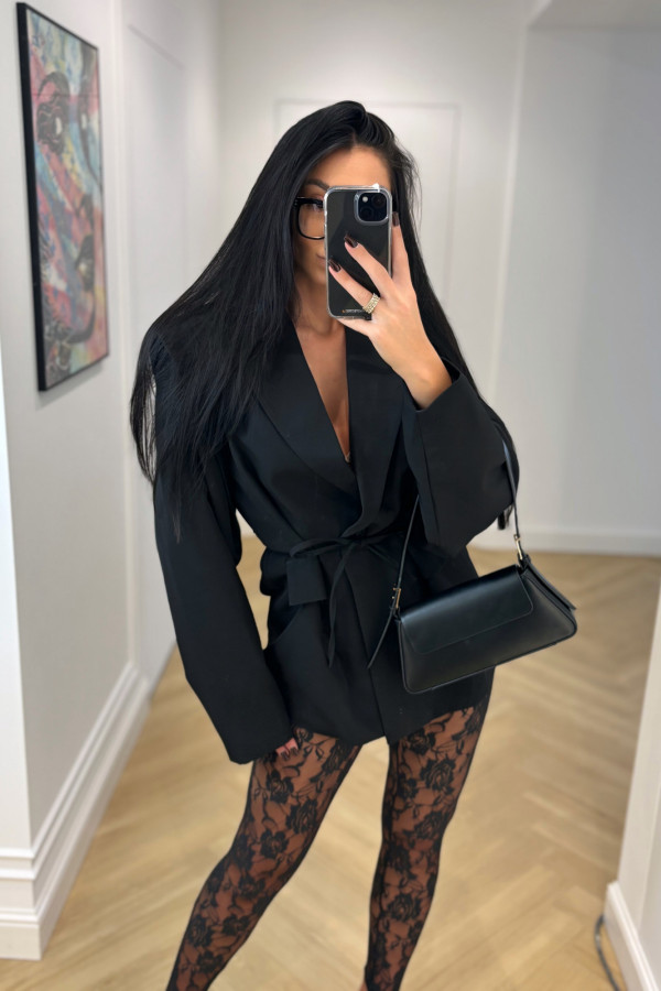 Czarna marynarka z guzikiem i wiązaniem w tali MIA 19