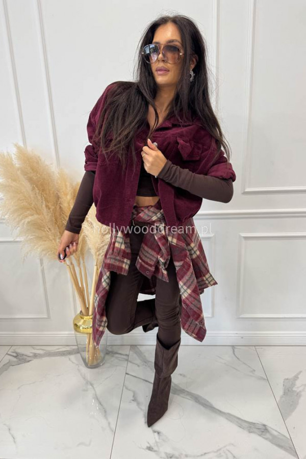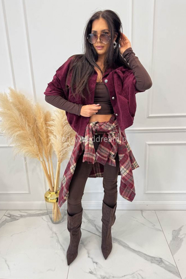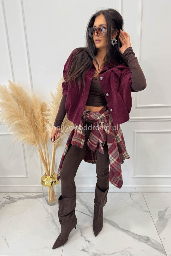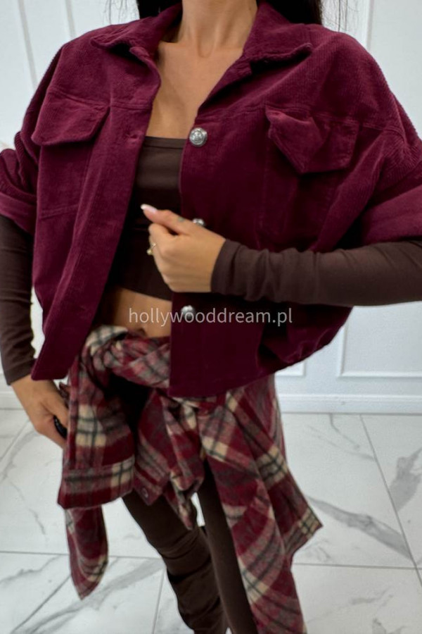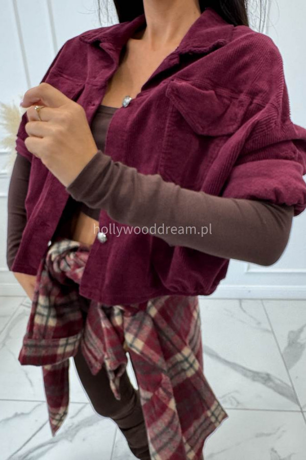 - Kurtka sztruksowa bawełniana na guziki śliwkowa MARLENA
