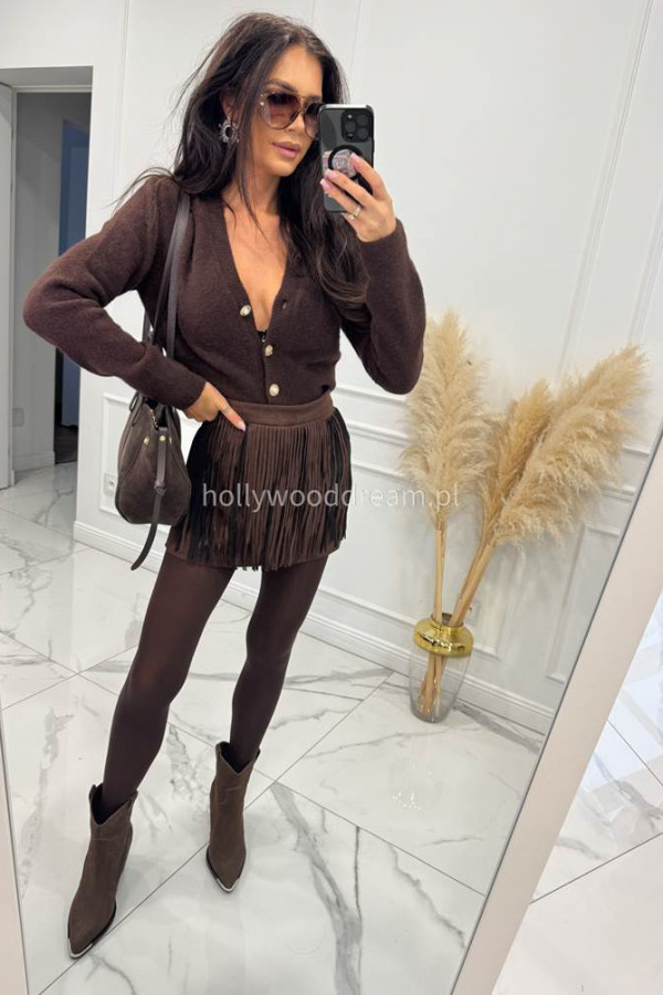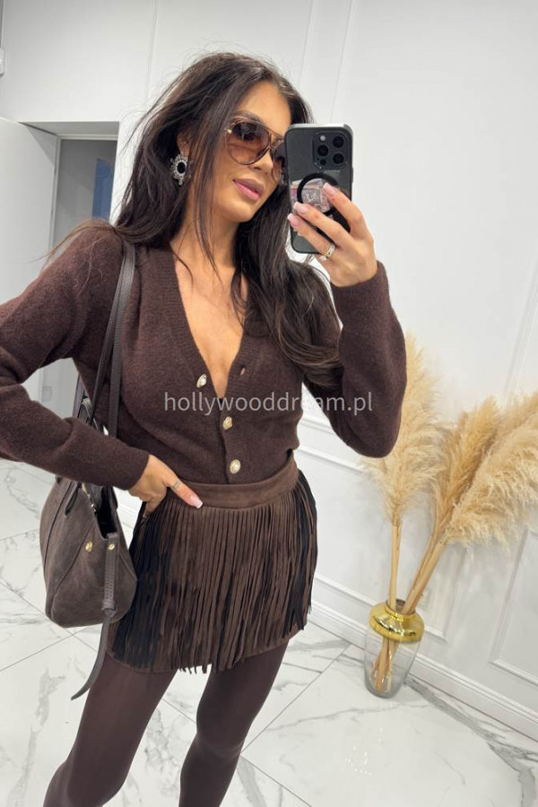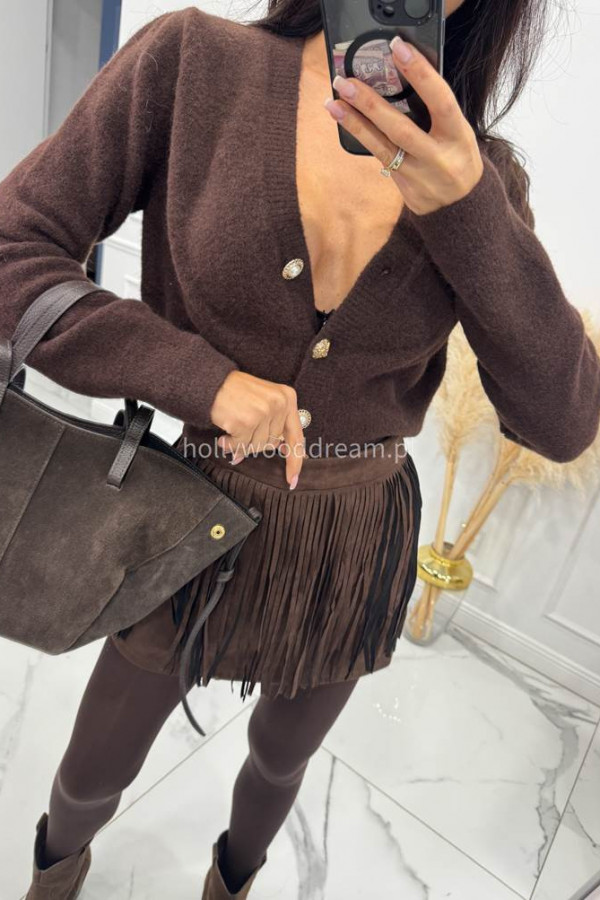 Czekoladowy krótki kardigan z ozdobnymi złotymi guzikami PEDRO 31