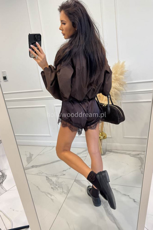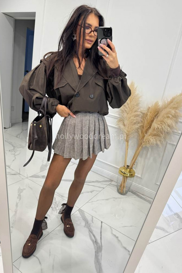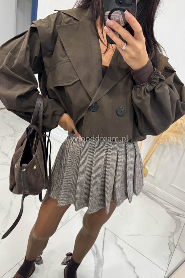 - Brązowa kurtka krótka z bufiastymi rękawami zapinana na guziki MATI