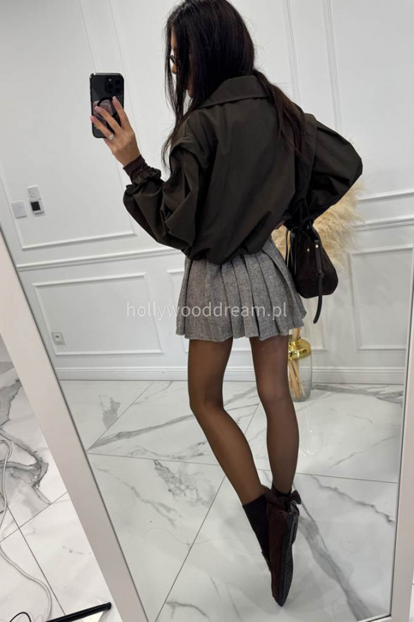 Brązowa kurtka krótka z bufiastymi rękawami zapinana na guziki MATI 19