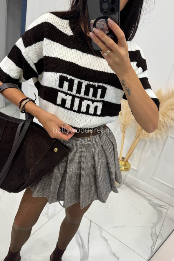 Ciemnoczekoladowy sweter z grubymi kremowymi pasami ANNA 44