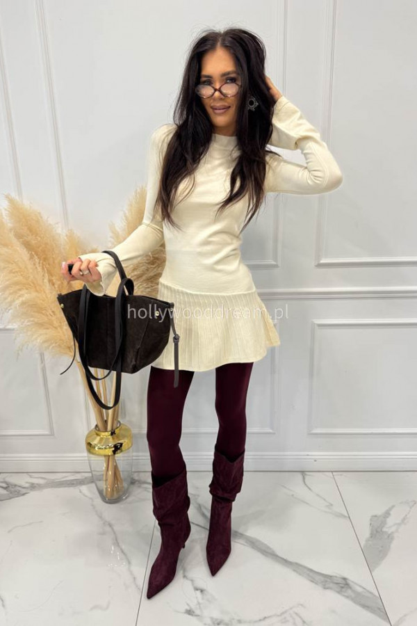 Śmietankowa sukienka z rozszerzonym, plisowanym dołem i rękawami LAURA 09