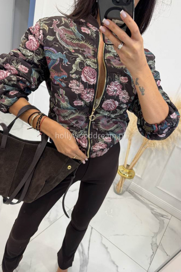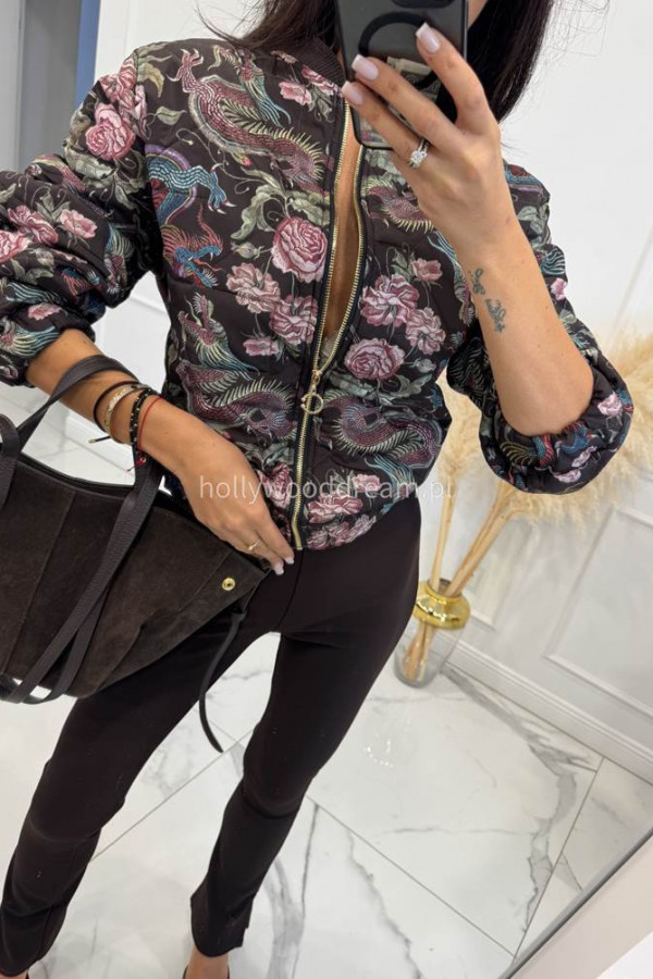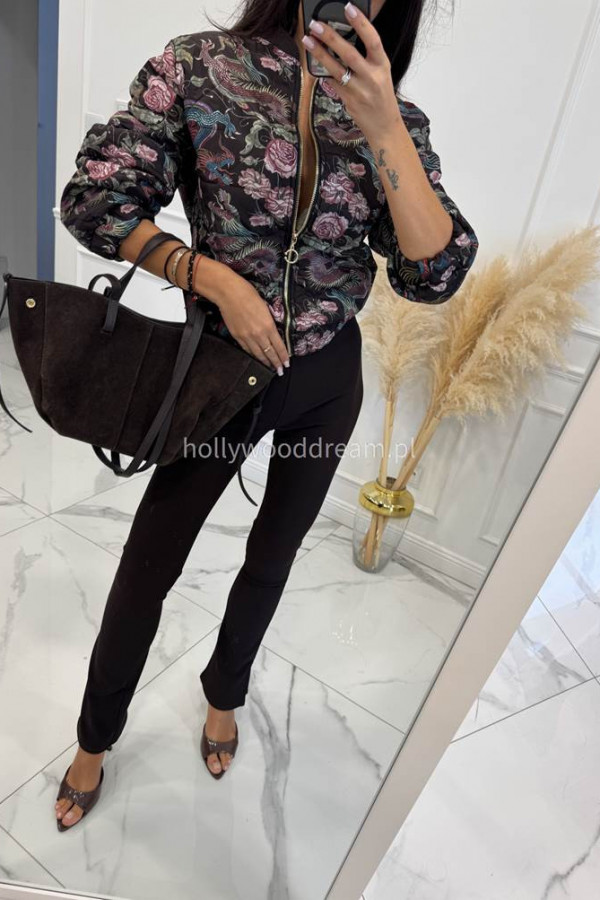 Czekoladowa bomberka Aga z kolorowym kwiatowym wzorem to połączenie klasyki i modnego designu. Wykonana z lekkiego, przyjemnego w dotyku materiału, zapewnia komfort noszenia na co dzień. Model zapinany na zamek, z elastycznymi ściągaczami przy rękawach i dole, idealnie dopasowuje się do sylwetki. Doskonała propozycja na wiosenne i jesienne stylizacje.