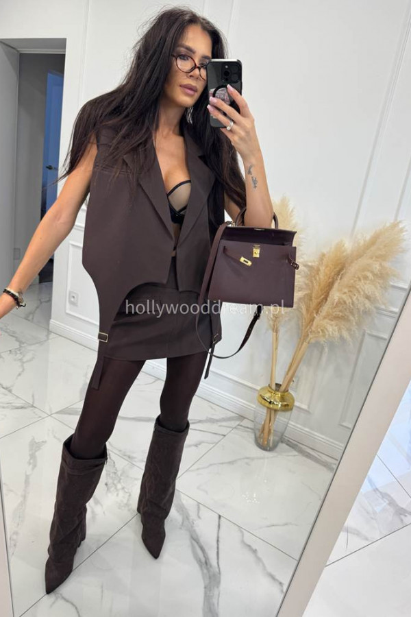 Czekoladowe Spódnico-spodenki z imitacją kieszeni Conor 25