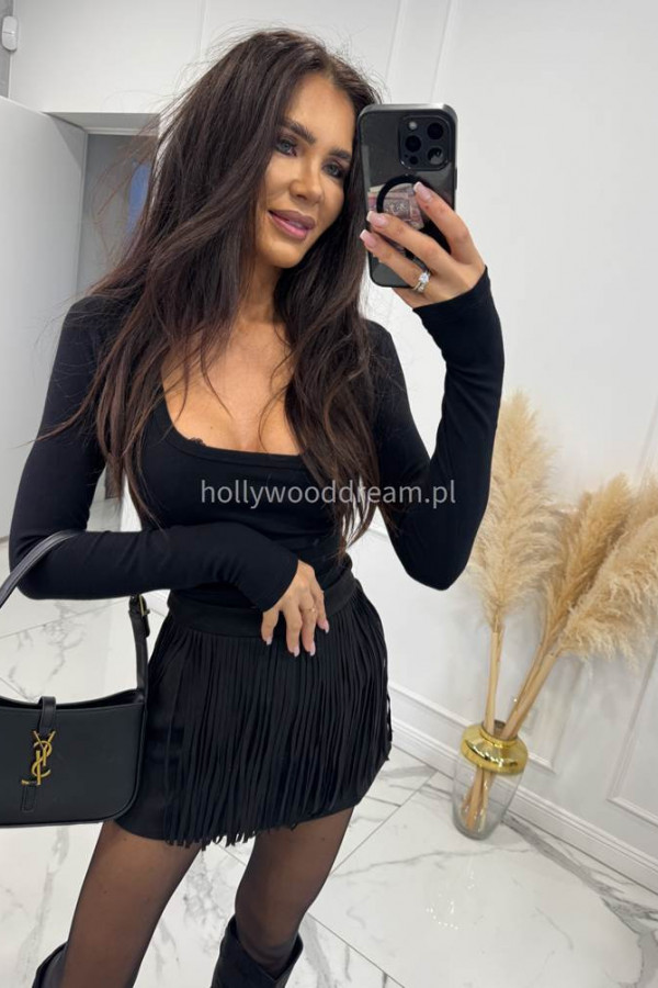 Czarna bluzka z długim rękawem i dekoltem karo MARCELA 30