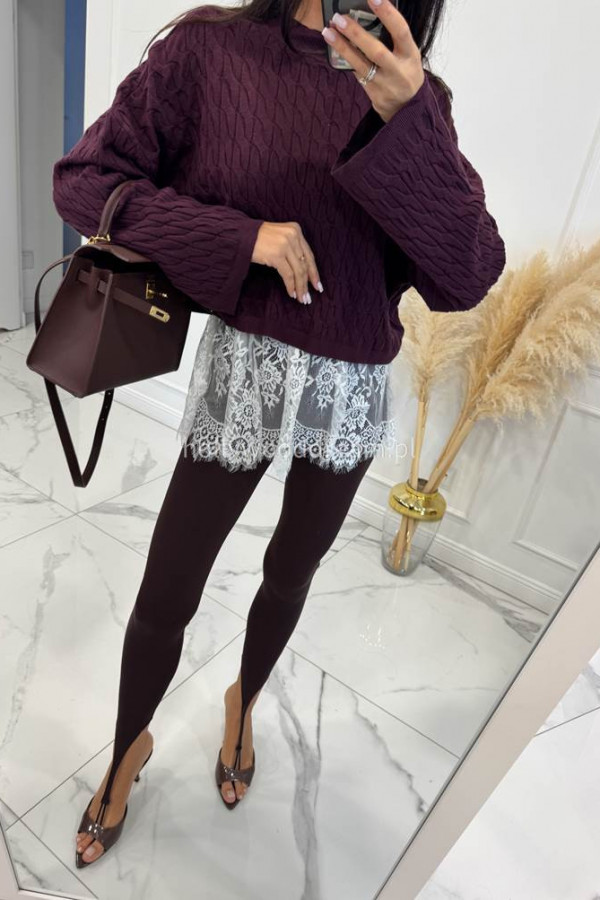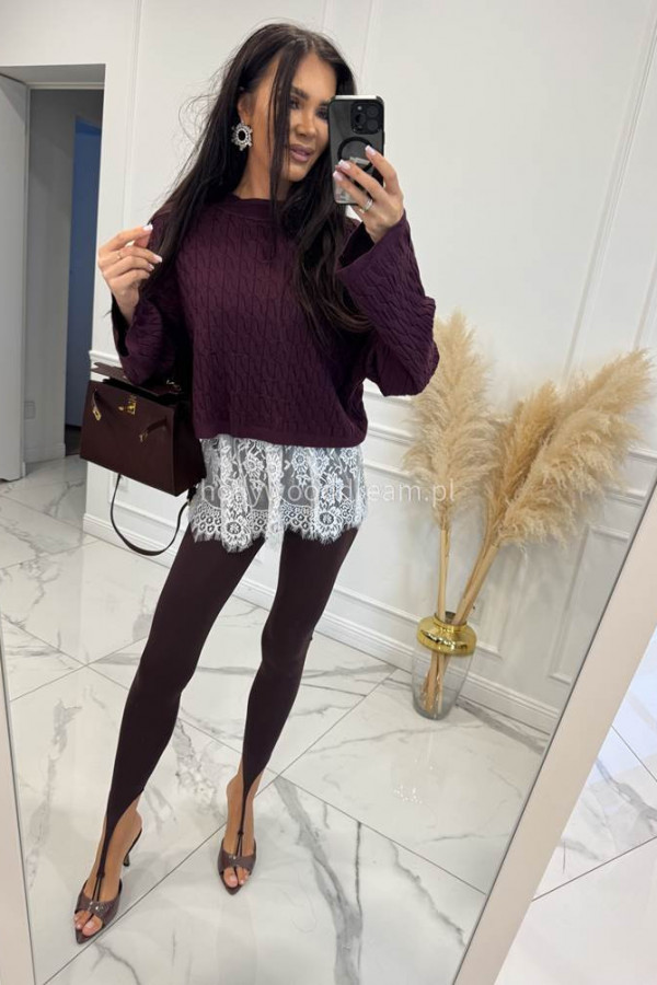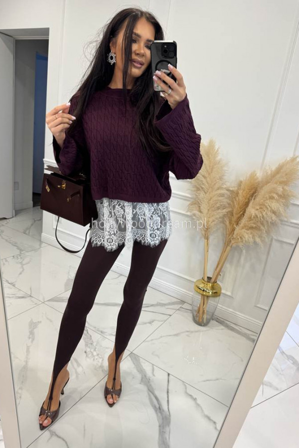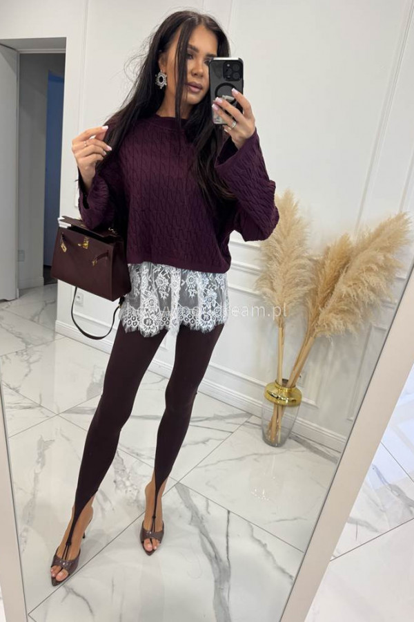 Bordowy sweter z topem z białą koronką POPPY to połączenie klasyki i subtelnej zmysłowości. W zestawie z delikatnym topem wykończonym białą koronką tworzy elegancki i kobiecy duet, idealny zarówno na co dzień, jak i na wieczorne wyjścia. Miękki materiał swetra zapewnia komfort i ciepło, a koronkowy akcent dodaje lekkości i romantycznego charakteru. To doskonały wybór dla kobiet ceniących wygodę w stylowym wydaniu.