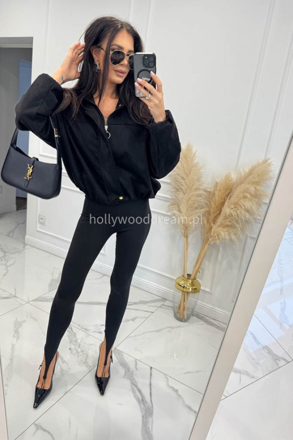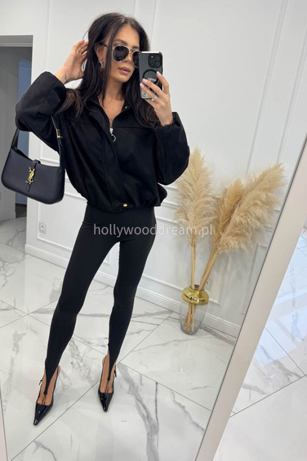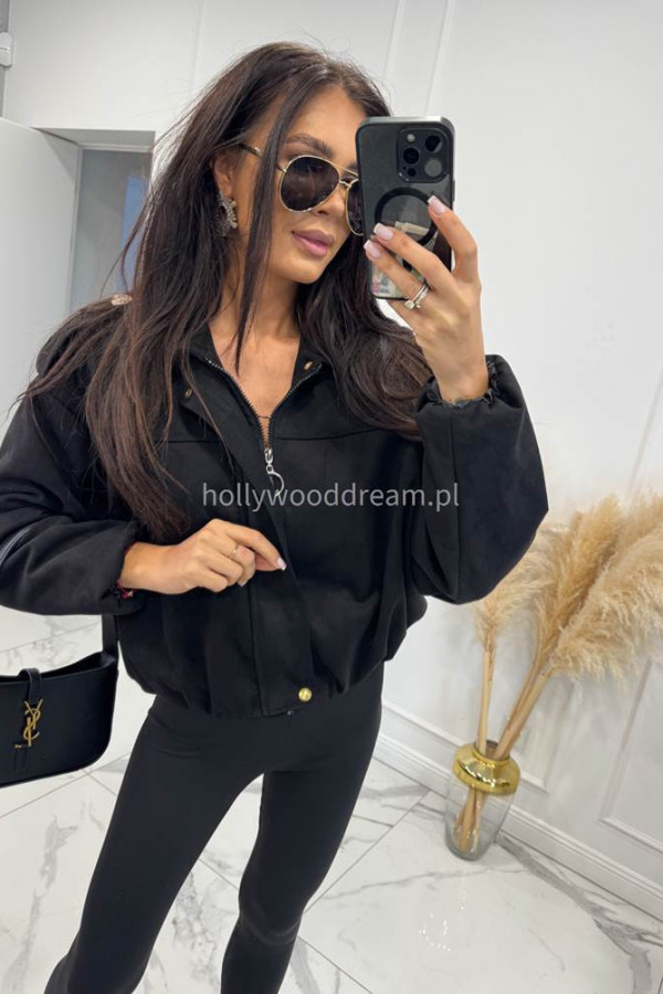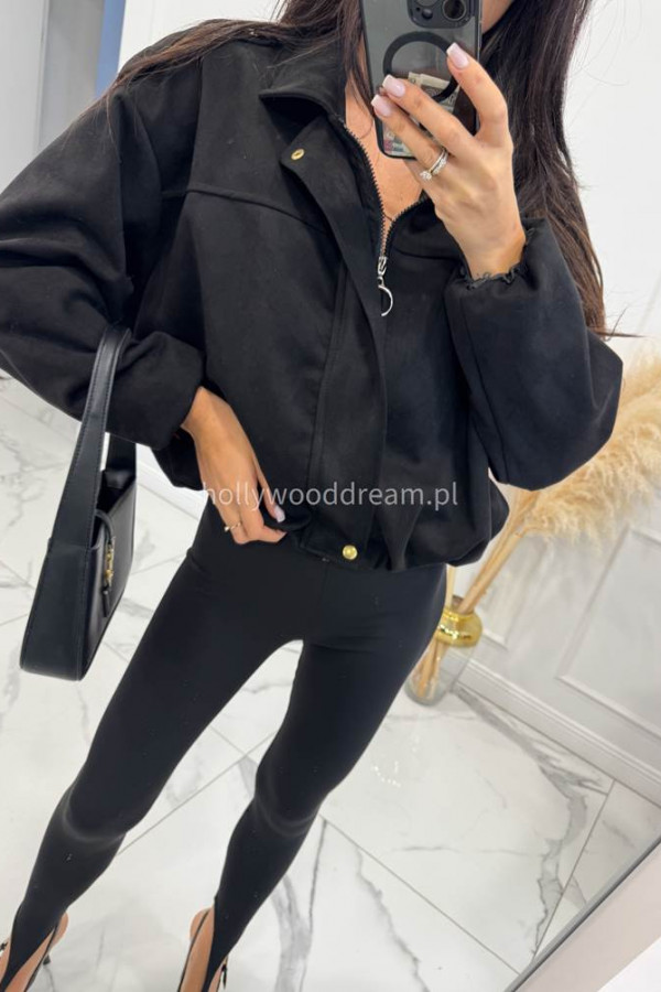 - Czarna kurtka bomberka zamszowa z ozdobami przy ramionach KLAUDIA