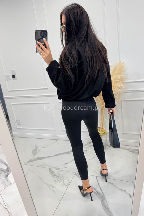 Czarna kurtka bomberka zamszowa z ozdobami przy ramionach KLAUDIA 02
