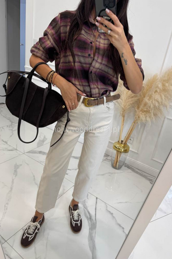 Kremowe spodnie balloon jeans z paskiem Frank to nowoczesna odsłona wygody i luzu. Spodnie typu balloon charakteryzują się szerszym fasonem w biodrach i delikatnym zwężeniem ku dołowi, co tworzy modny, nonszalancki look z nutą retro. Wykonane z miękkiego, oddychającego materiału w uniwersalnym kremowym odcieniu, zapewniają komfort przez cały dzień. Elastyczny pas i praktyczne kieszenie sprawiają, że spodnie są idealnym wyborem zarówno na co dzień, jak i w stylizacjach smart casual. Doskonale prezentują się z dopasowaną górą, oversize'ową koszulą czy basicowym t-shirtem.