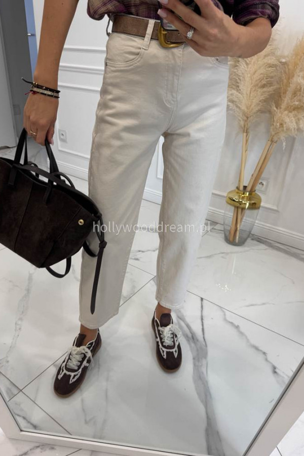 Kremowe spodnie balloon jeans z paskiem Frank 195