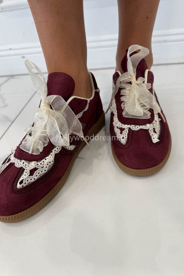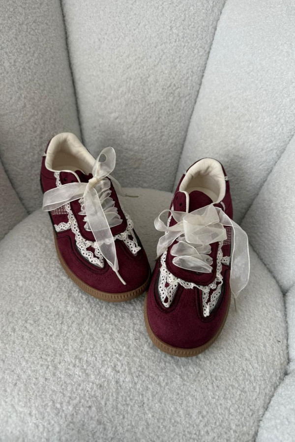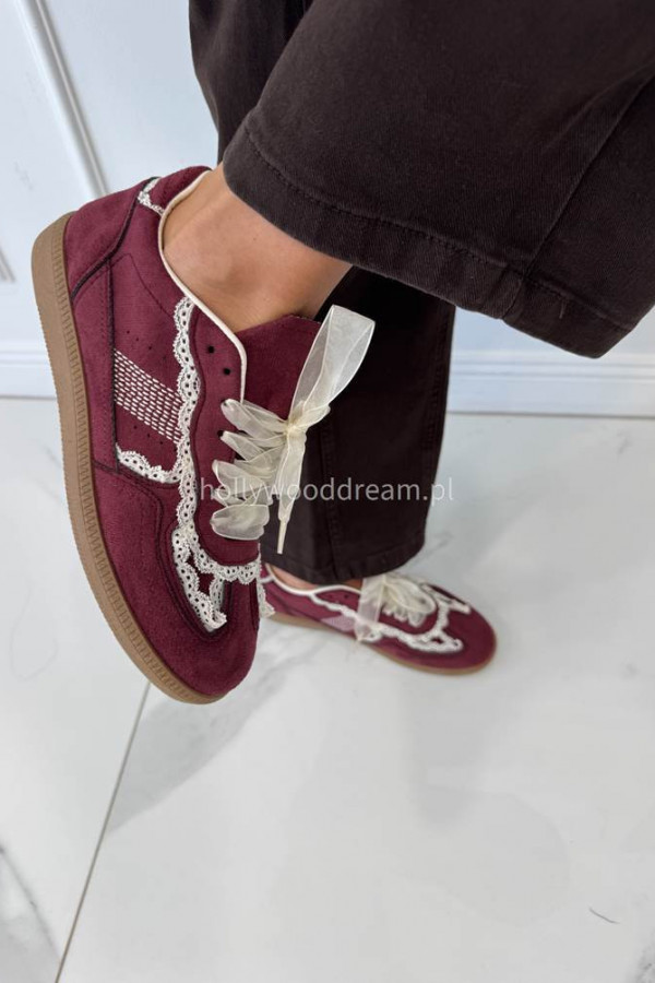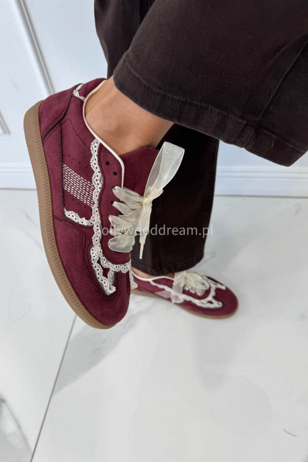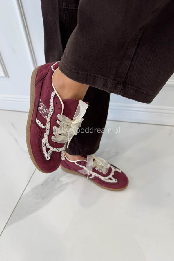 Bordowe buty zamszowe z obszyciem koronki JUDDY