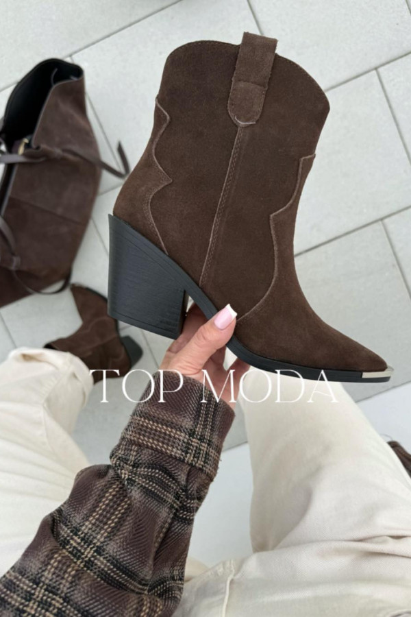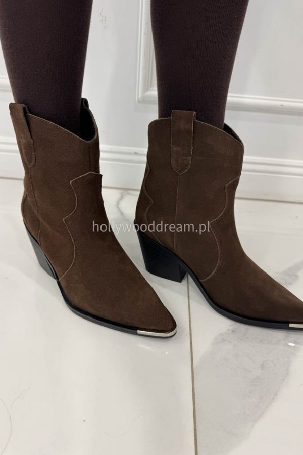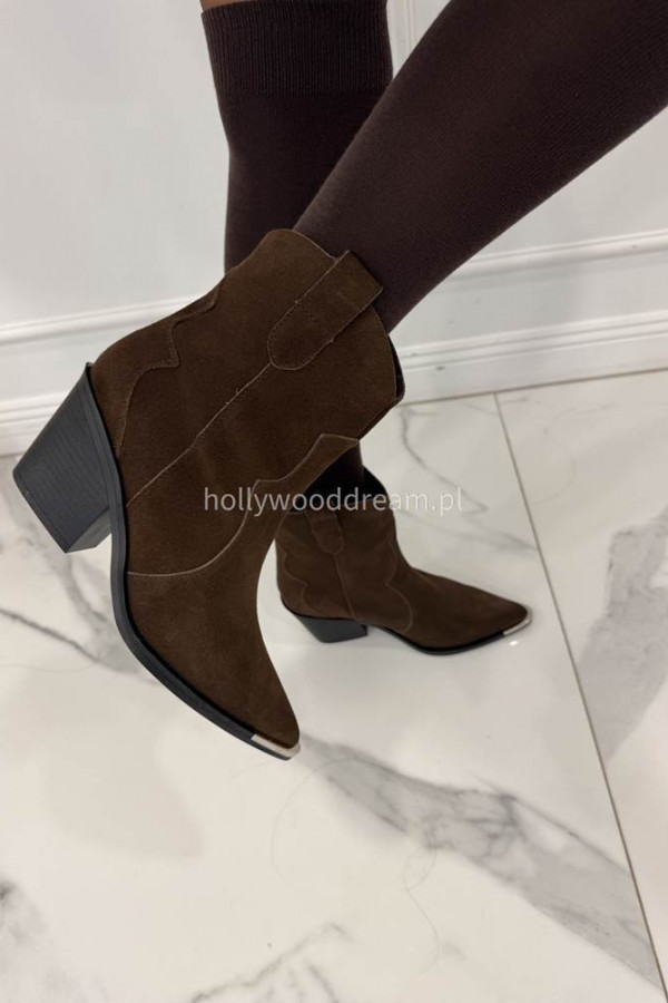 - brązowe kowbojki zamszowe