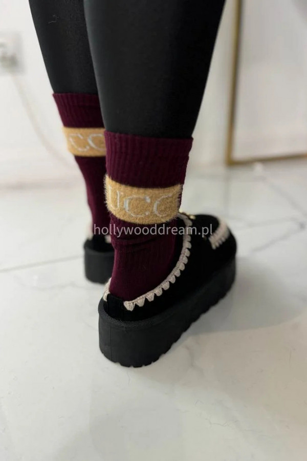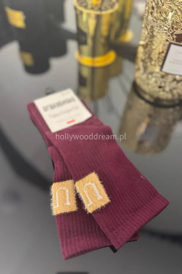 Bordowe skarpety bawełniane z pluszowym napisem UCC